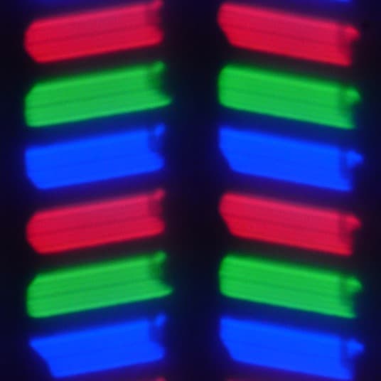 В данном смартфоне используется матрица типа IPS. Микрофотографии демонстрируют типичную для IPS структуру субпикселей: