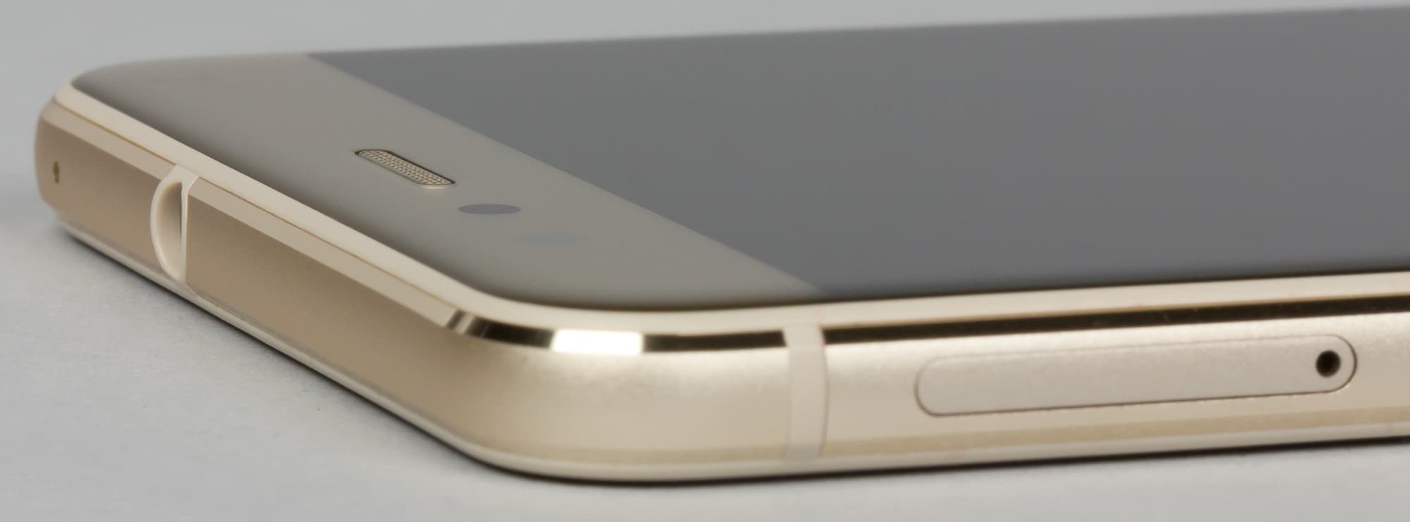 Верхний торец отдан под 3,5-миллиметровый выход на наушники. Здесь же можно заметить отверстие вспомогательного микрофона, в аппарате есть система шумоподавления.