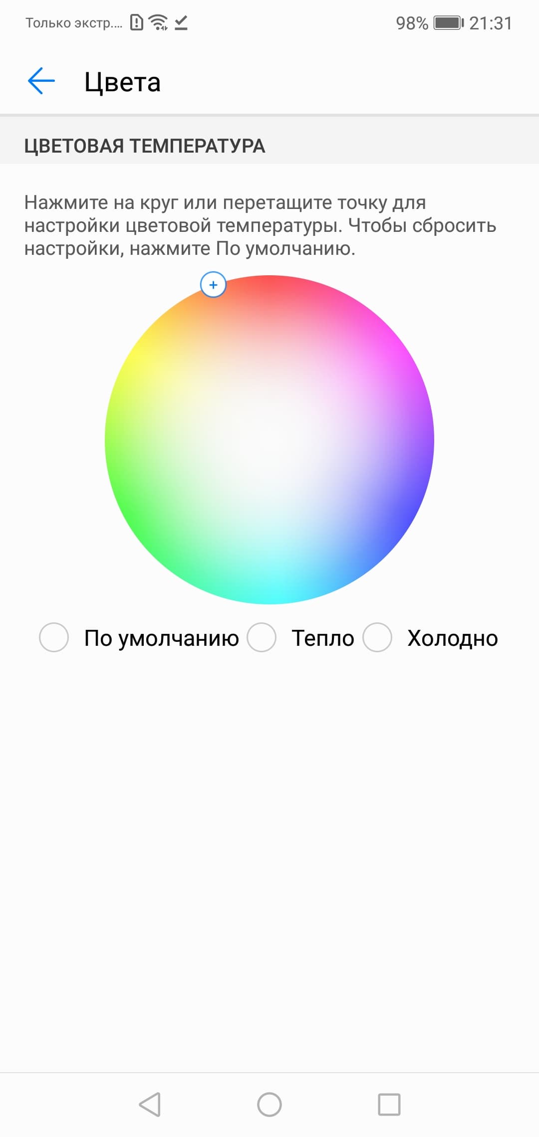 В этом устройстве есть возможность скорректировать цветовой баланс с помощью регулировки оттенка на цветовом круге.