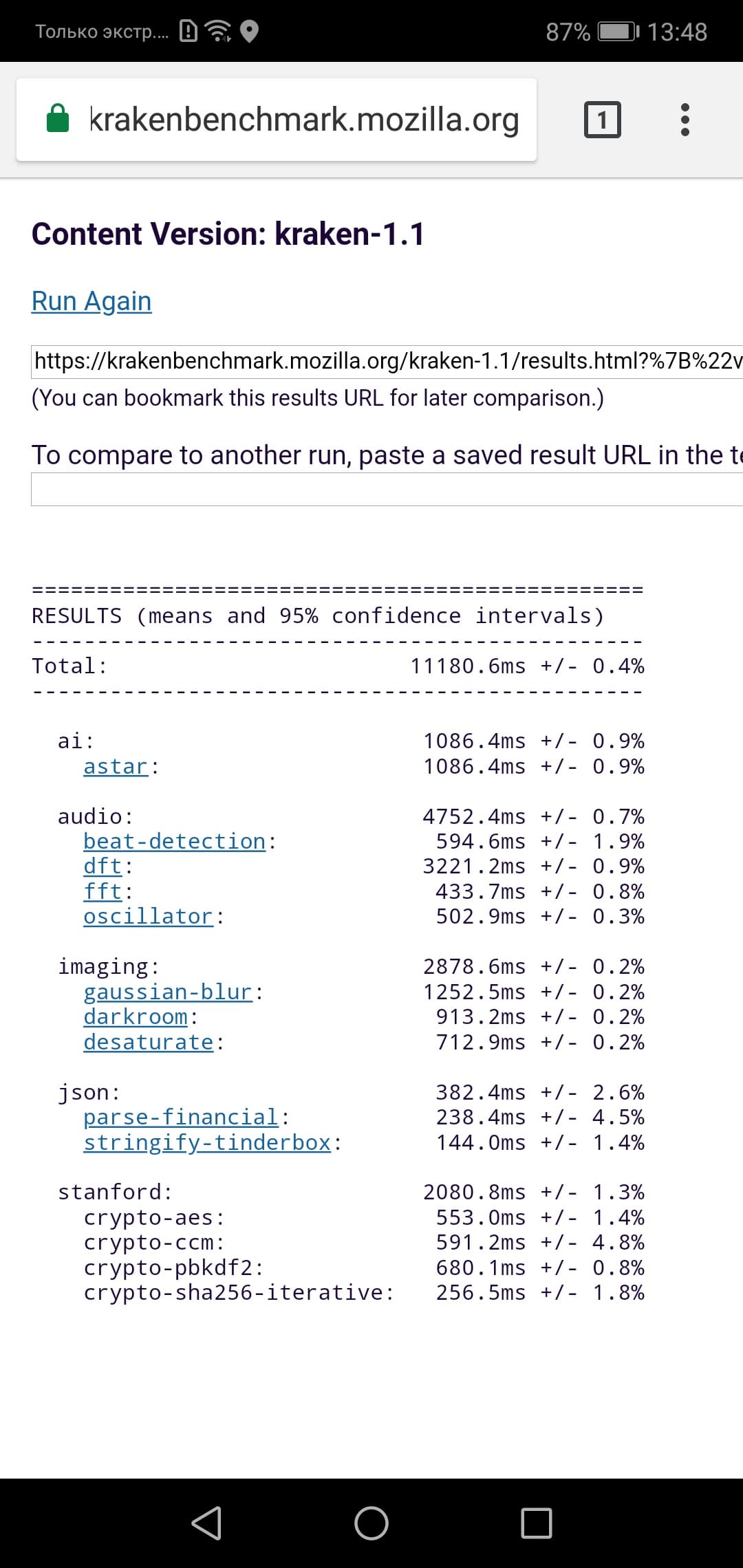 | Mozilla Kraken (мс, меньше — лучше) | 11180 | 11974 | 11431 | 16739 |
