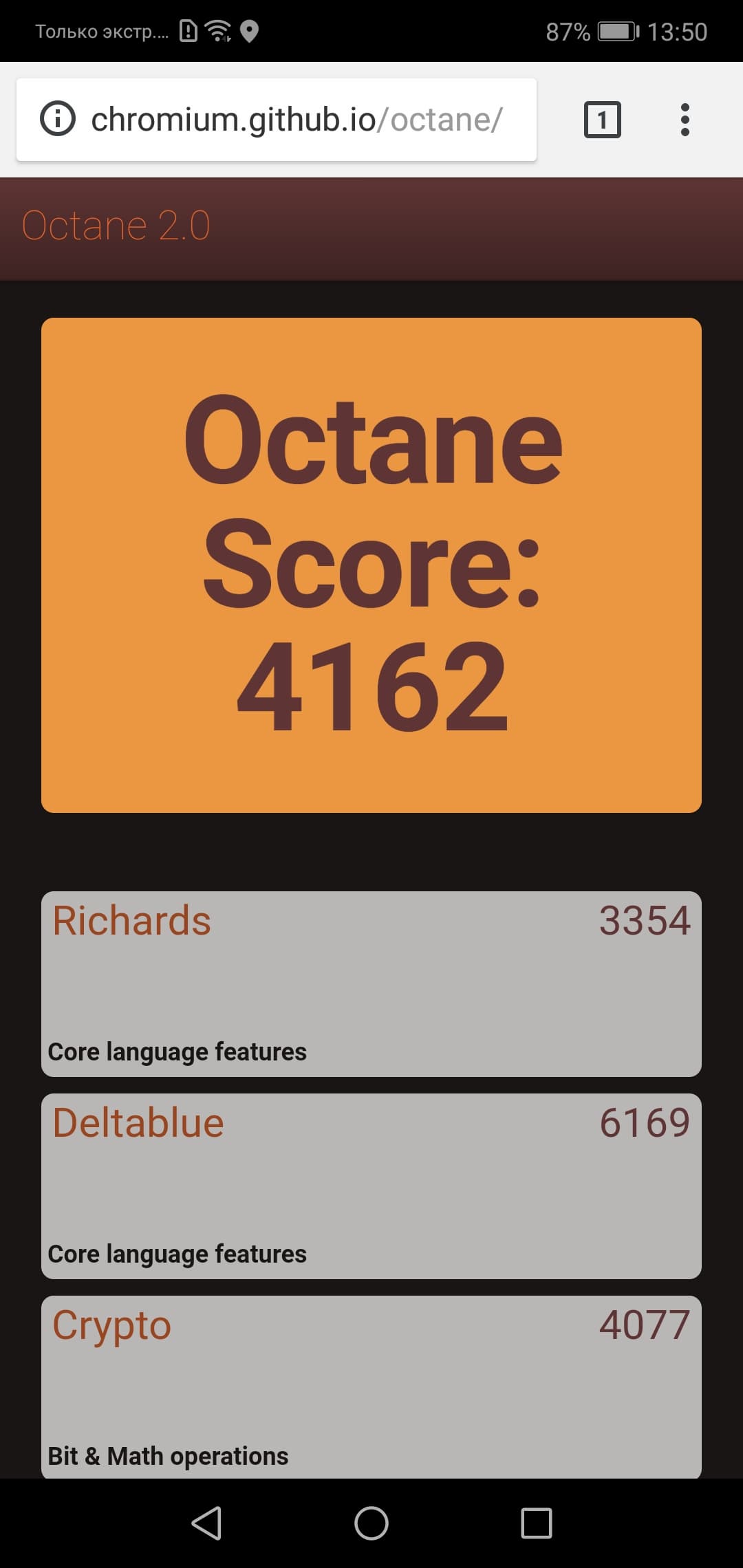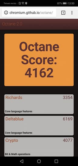 | Google Octane 2 (больше — лучше) | 4162 | 3818 | 4290 | 2649 |