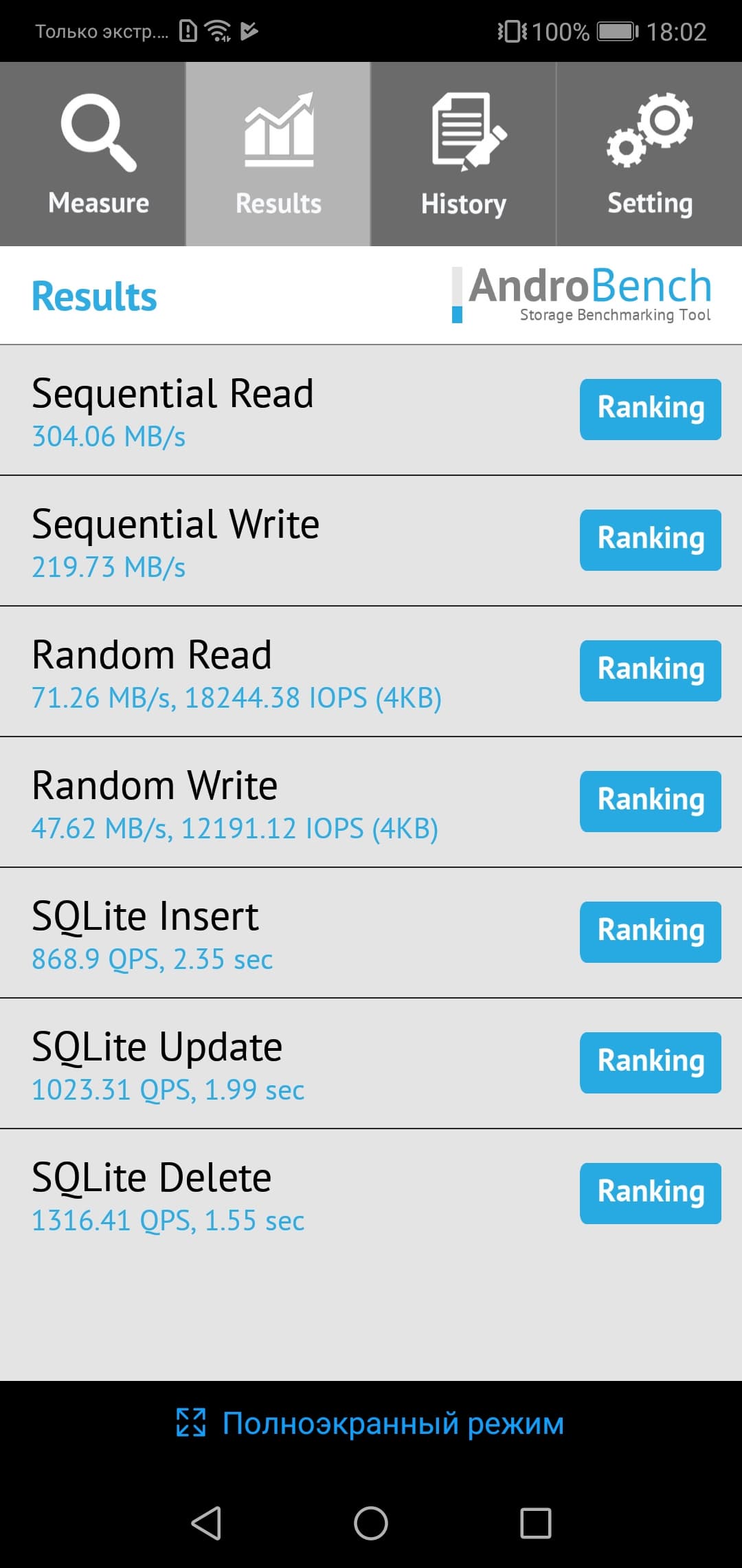 Результаты теста AndroBench на скорость работы с памятью: