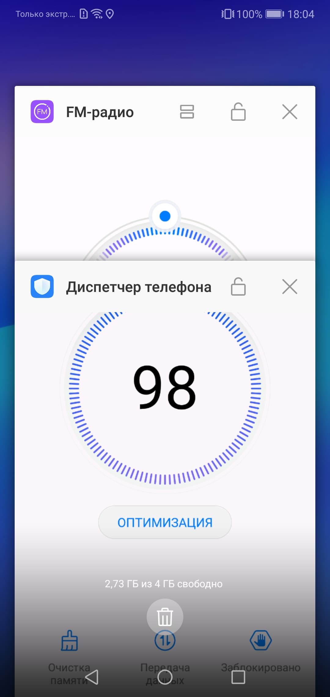 В качестве программной платформы используется Google Android 8.0 с хорошо знакомой фирменной оболочкой EMUI 8.0 с возможностью обновления по воздуху. Здесь все стандартно. Стоит лишь отметить особенности, связанные с переходом на новое вытянутое в высоту соотношение сторон экрана («FullView»): всем таким аппаратам добавили полоску «Полноэкранный режим», которая появляется каждый раз при запуске нового приложения. Неудобно то, что когда на нее нажимаешь, приложение обязательно перезагружается, и теряется весь прогресс. Так что нужно либо нажимать ее сразу же, либо уже не трогать до конца цепочки действий. Особенно это раздражает в играх, которые долго запускаются, а после нажатия полоски приходится ждать повторного запуска еще раз.
