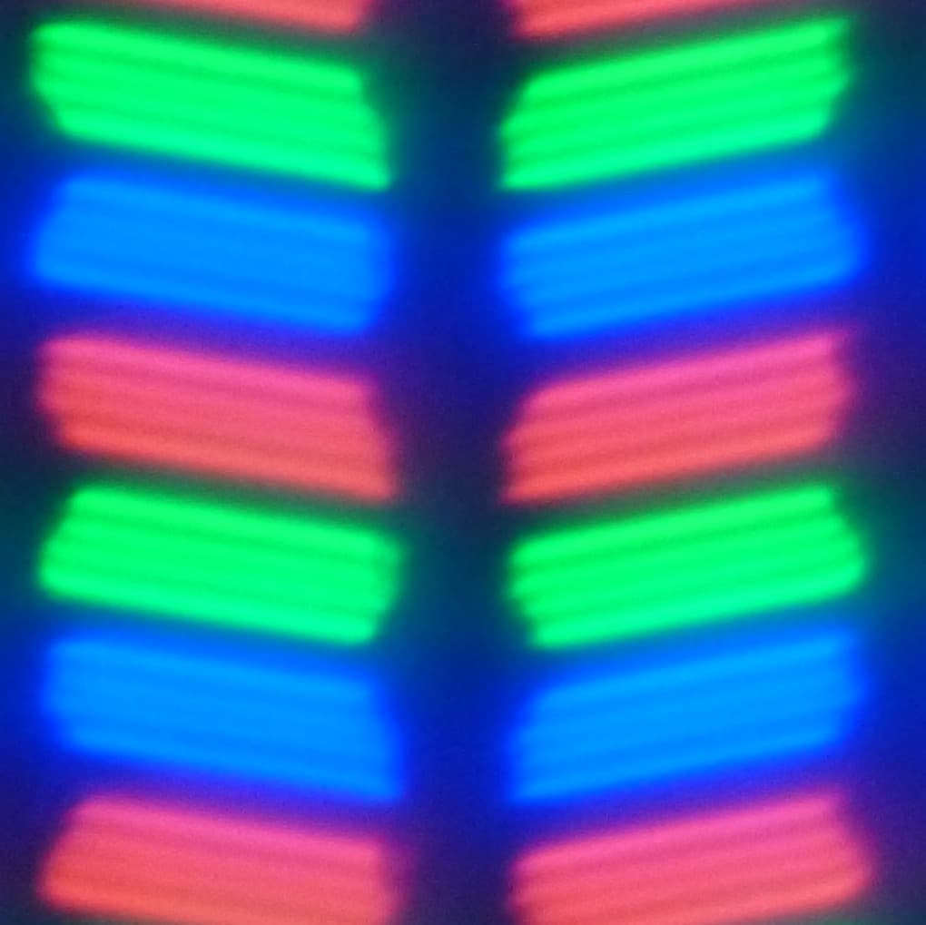В данном смартфоне используется матрица типа IPS. Микрофотографии демонстрируют типичную для IPS структуру субпикселей: