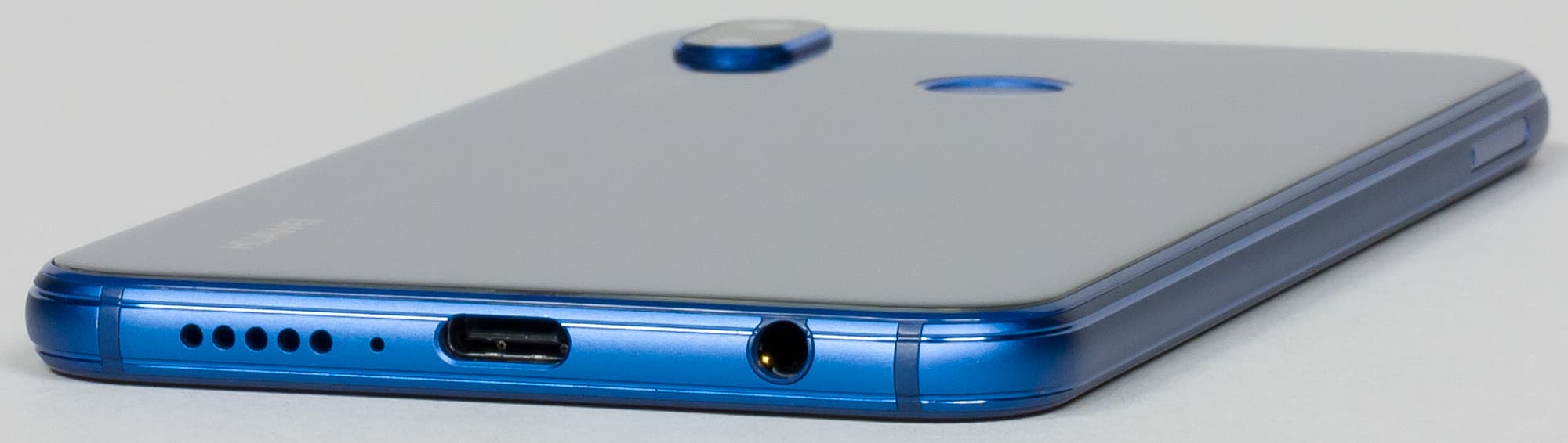В нижнем торце установлены не отцентрированные относительно продольной оси разъем USB Type-C и 3,5-миллиметровый аудиовыход на наушники. При этом ряд отверстий, за которым скрывается динамик, наоборот, отцентрирован, что вносит еще больший диссонанс.