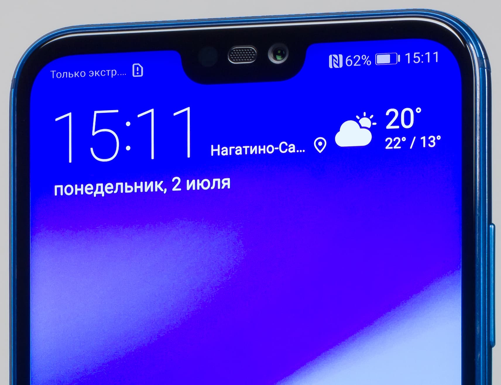 Передняя панель полностью прикрыта таким же защитным стеклом с покатыми краями, как и задняя. Поэтому если смотреть в профиль, то корпус абсолютно симметричен. Над экраном не забыли установить светодиодный индикатор событий, что не может не радовать. Правда, не радует наличие нелепого выреза в верхней части дисплея, но все-таки здесь размер «челки» находится в разумных пределах, по бокам от нее остается достаточно места, чтобы строка состояния функционировала адекватно.