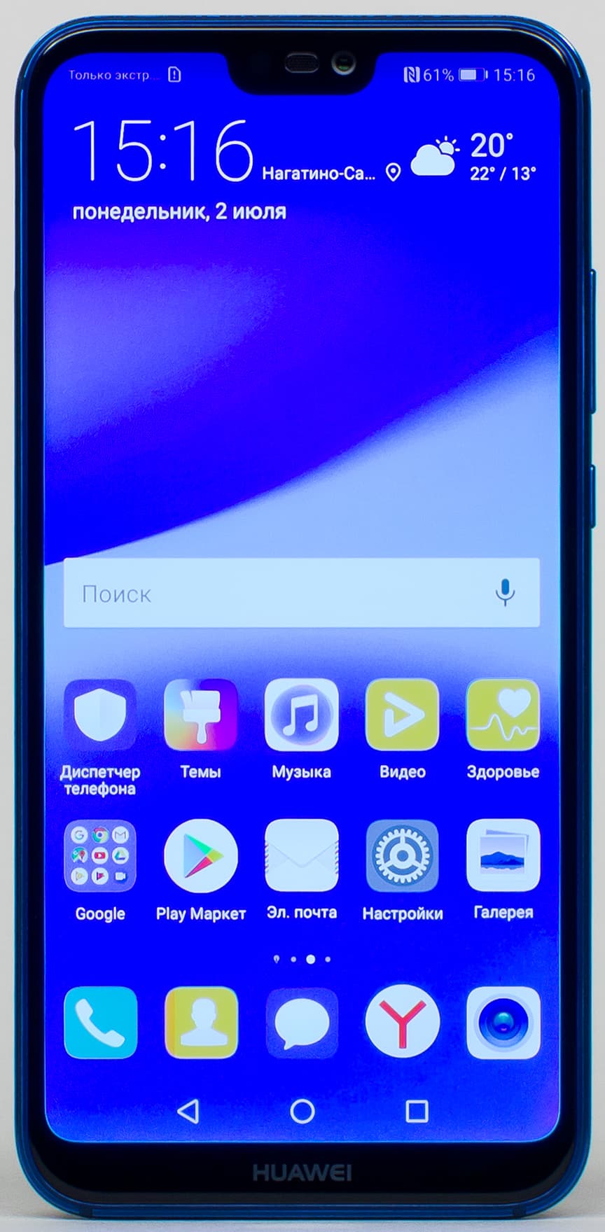 В нижней части под экраном нет аппаратных кнопок, пустое место Huawei упорно украшает собственным логотипом, это явно лишнее. Впрочем, справедливости ради, этого пустого места здесь совсем мало.