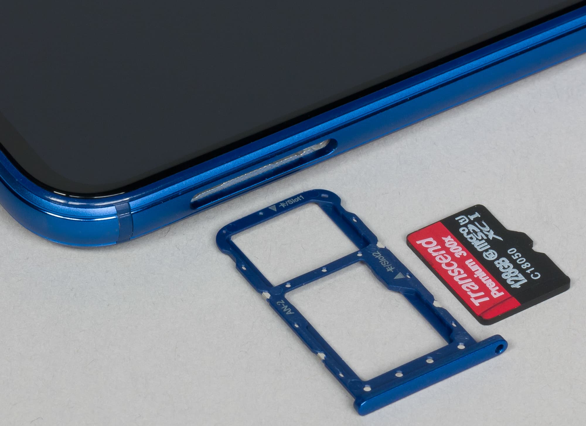 Разъем под карточки гибридный, карту памяти здесь можно установить, только если вынуть одну из двух SIM-карт формата Nano-SIM.