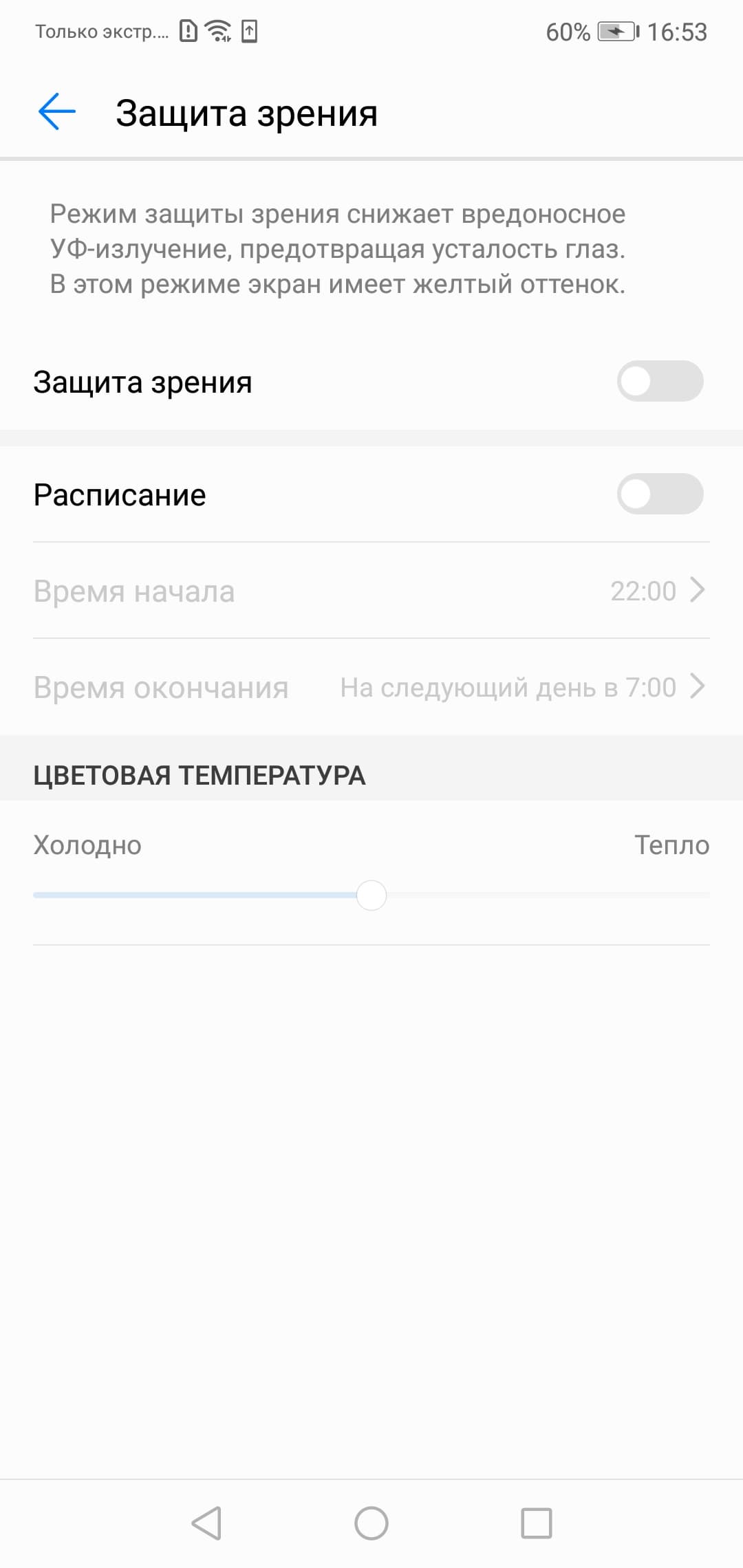 Присутствует модная настройка, позволяющая снизить интенсивность синей компоненты.
