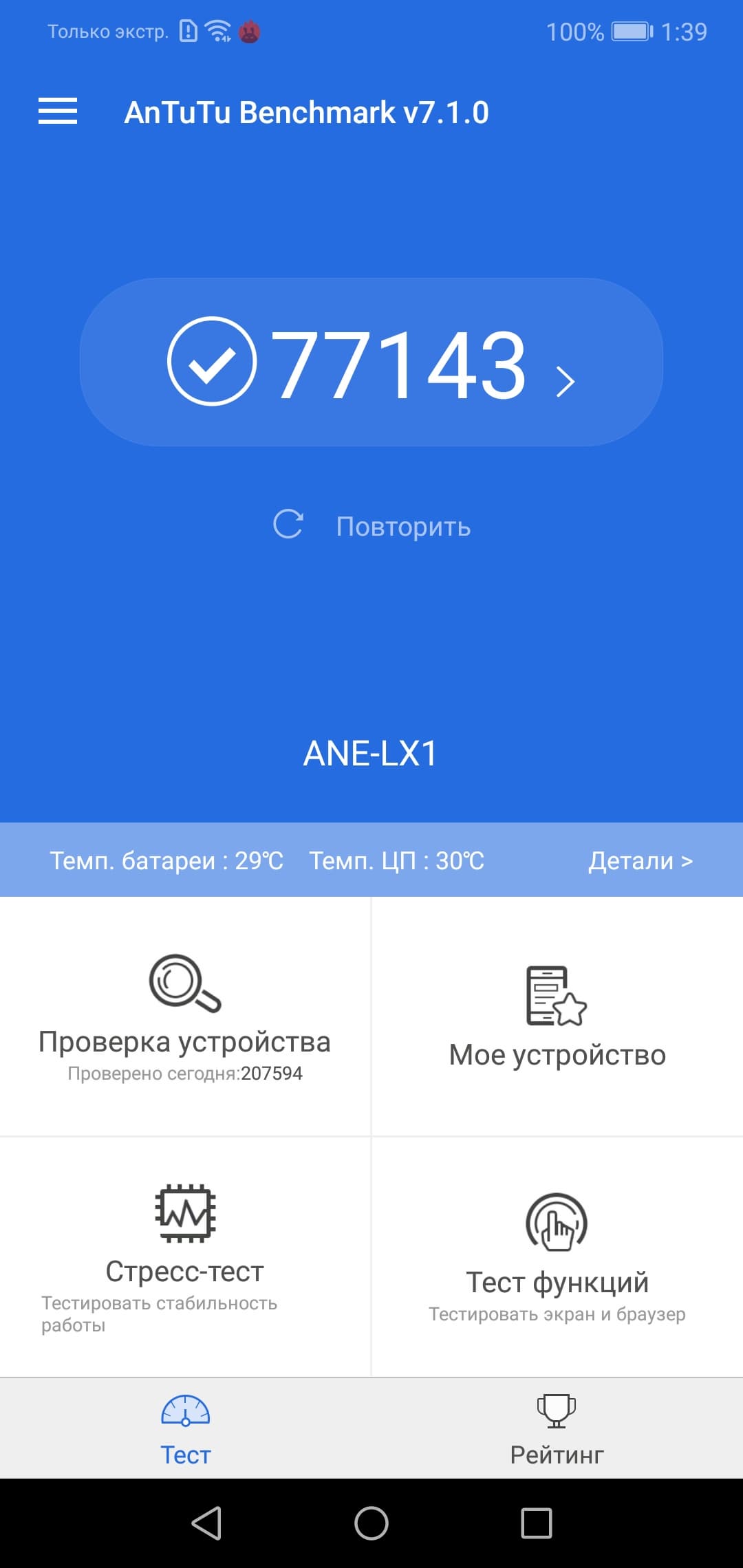 | AnTuTu (v7.x) (больше — лучше) | 77143 | 62893 | 62240 | 58383 |
