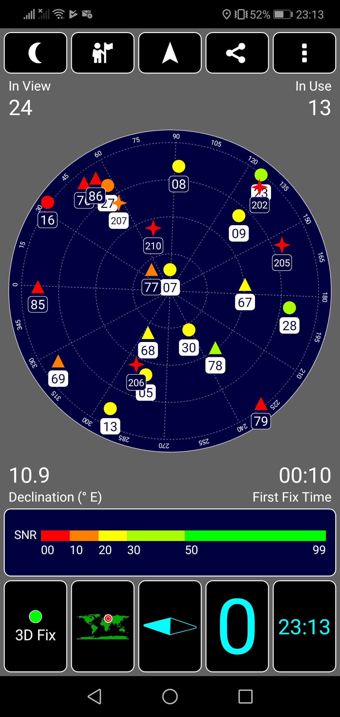 Навигационный модуль работает и с GPS (с A-GPS), и с отечественной Глонасс, и с китайской Beidou. Первые спутники при холодном старте обнаруживаются быстро, в течение первой минуты, точность позиционирования нареканий не вызывает. Магнитный компас, необходимый для навигационных программ, в аппарате, естественно, имеется.