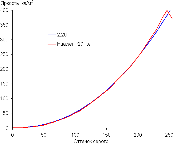 Контрастность (примерно в центре экрана) высокая — порядка 930:1. Время отклика при переходе черный-белый-черный равно 19 мс (9 мс вкл. + 10 мс выкл.). Переход между полутонами серого 25% и 75% (по численному значению цвета) и обратно в сумме занимает 32 мс. Построенная по 32 точкам с равным интервалом по численному значению оттенка серого гамма-кривая не выявила завала ни в светах, ни в тенях. Показатель аппроксимирующей степенной функции равен 2,20, что равно стандартному значению 2,2. При этом реальная гамма-кривая заметно отклоняется от степенной зависимости: