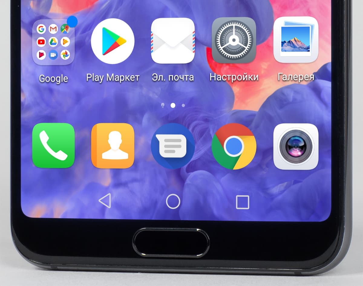 Внизу под экраном нет ряда аппаратных сенсорных кнопок, но имеется сканер отпечатков пальцев, выполненный в виде овальной ненажимаемой сенсорной площадки. Данная площадка также может играть роль навигационной кнопки, поддерживающей управление жестами. Конечно, есть возможность вывести привычную панель навигационных кнопок на экран — тут каждый сможет выбрать то, что ему по вкусу.