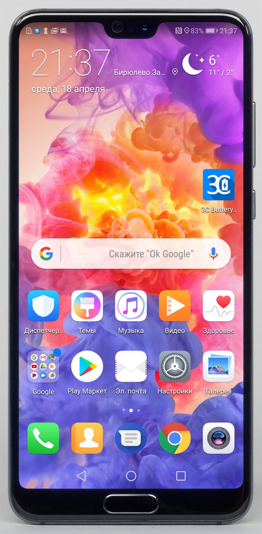 Аккумуляторная батарея Huawei P20 Pro емкостью 4000 мА·ч обеспечивает смартфону неплохой уровень автономности, однако при запуске требовательных игр аппарат довольно сильно нагревается. В реальных условиях использования при нормальном среднестатистическом режиме работы герой обзора доживает до вечерней зарядки, но не более того.