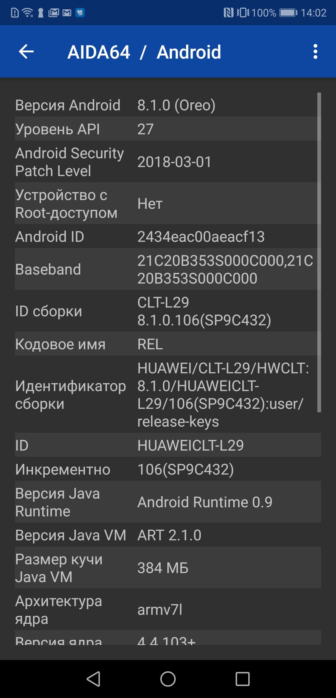 Основные характеристики Huawei P20 Pro (модель CLT-L29)