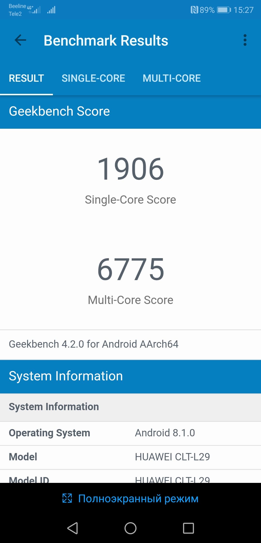Тестирование в комплексных тестах AnTuTu и GeekBench: