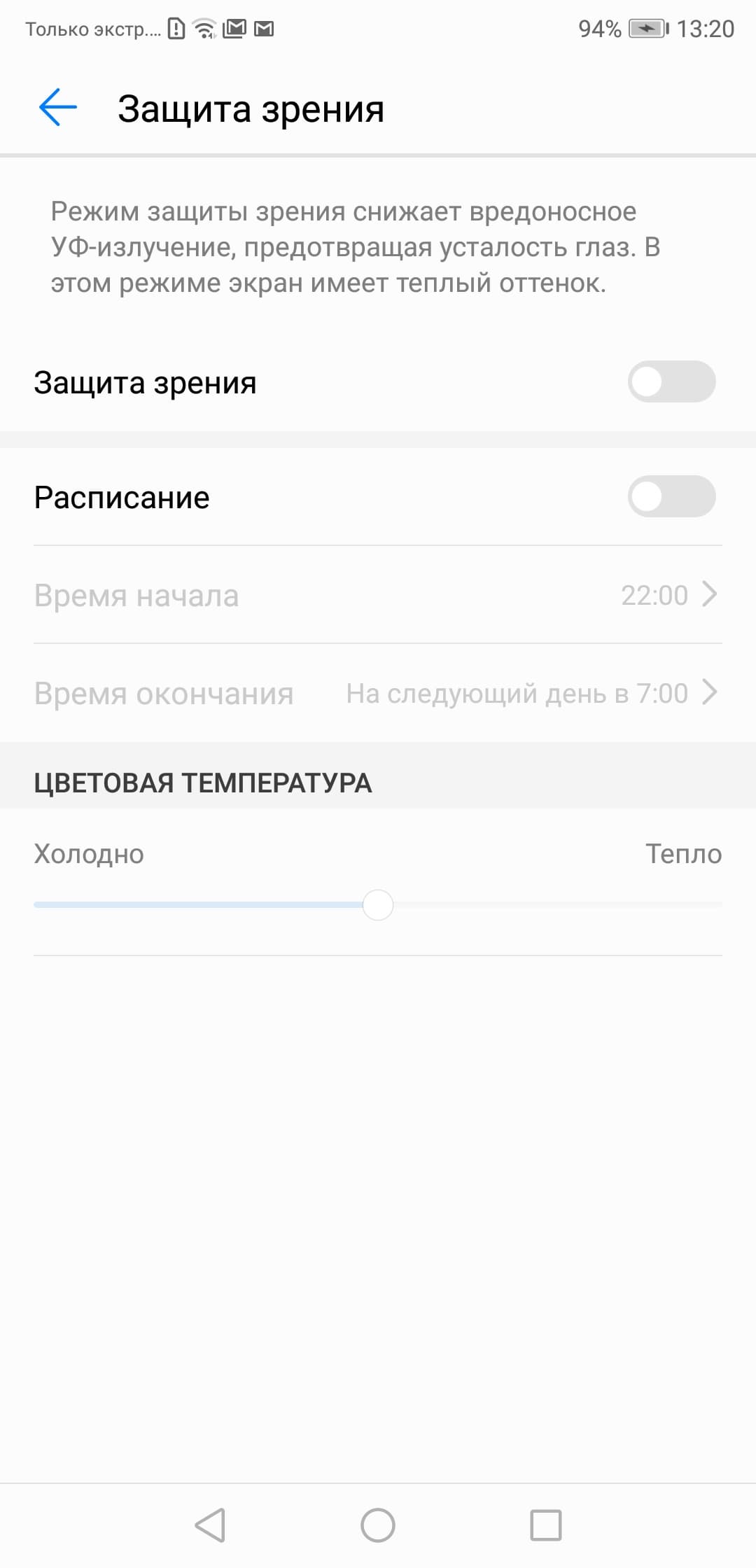 В ее описании, конечно, приведен традиционный бред про вредоносное УФ-излучение и усталость глаз, но такая коррекция может быть полезной, что разъяснено в нашей статье про iPad Pro 9,7. В любом случае, при развлечении с планшетом или смартфоном на ночь глядя лучше снизить яркость экрана до минимального, но еще комфортного уровня, а уж затем для успокоения собственной паранойи желтить экран данной настройкой (а лучше не желтить вовсе).