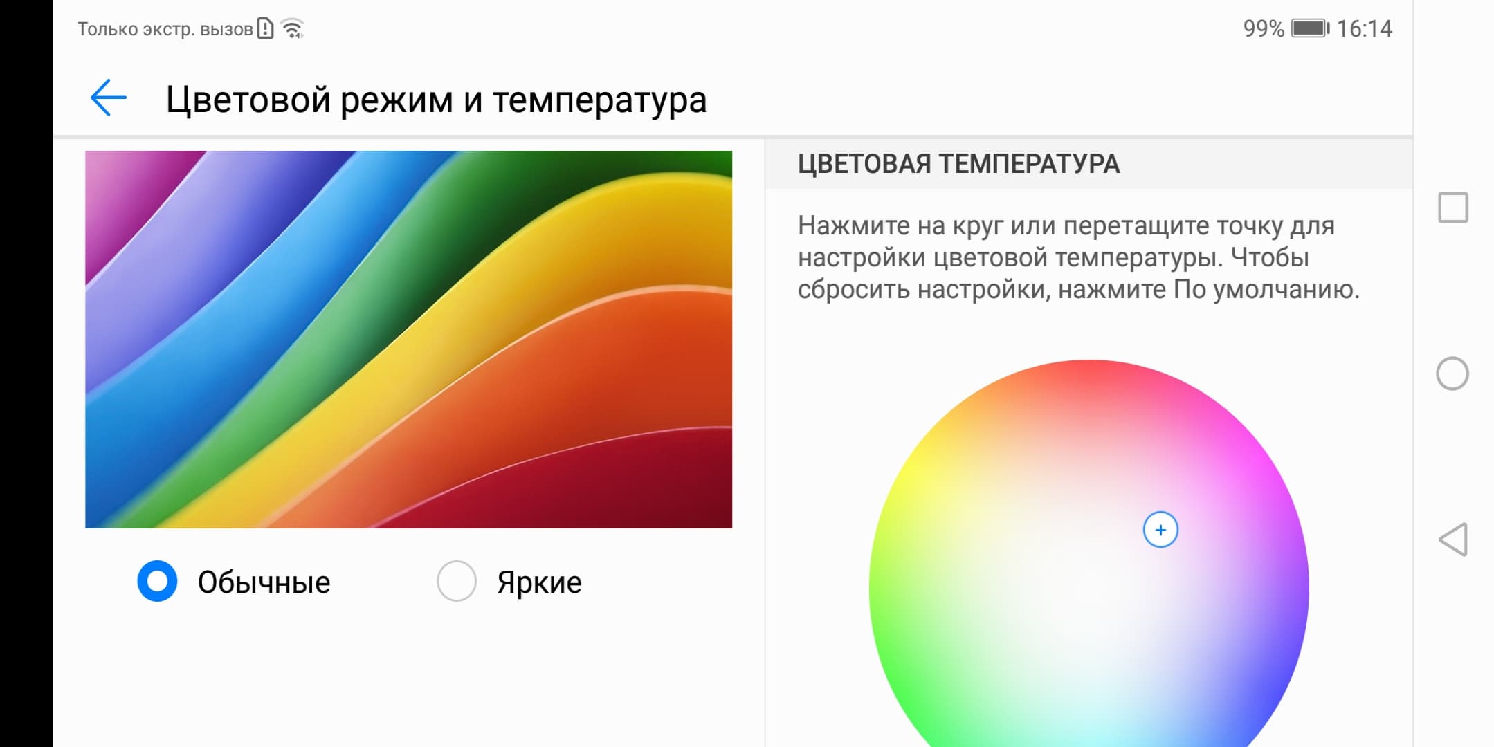 Фотография выше получена после выбора профиля Цвета → Обычные в настройках экрана, всего их два: