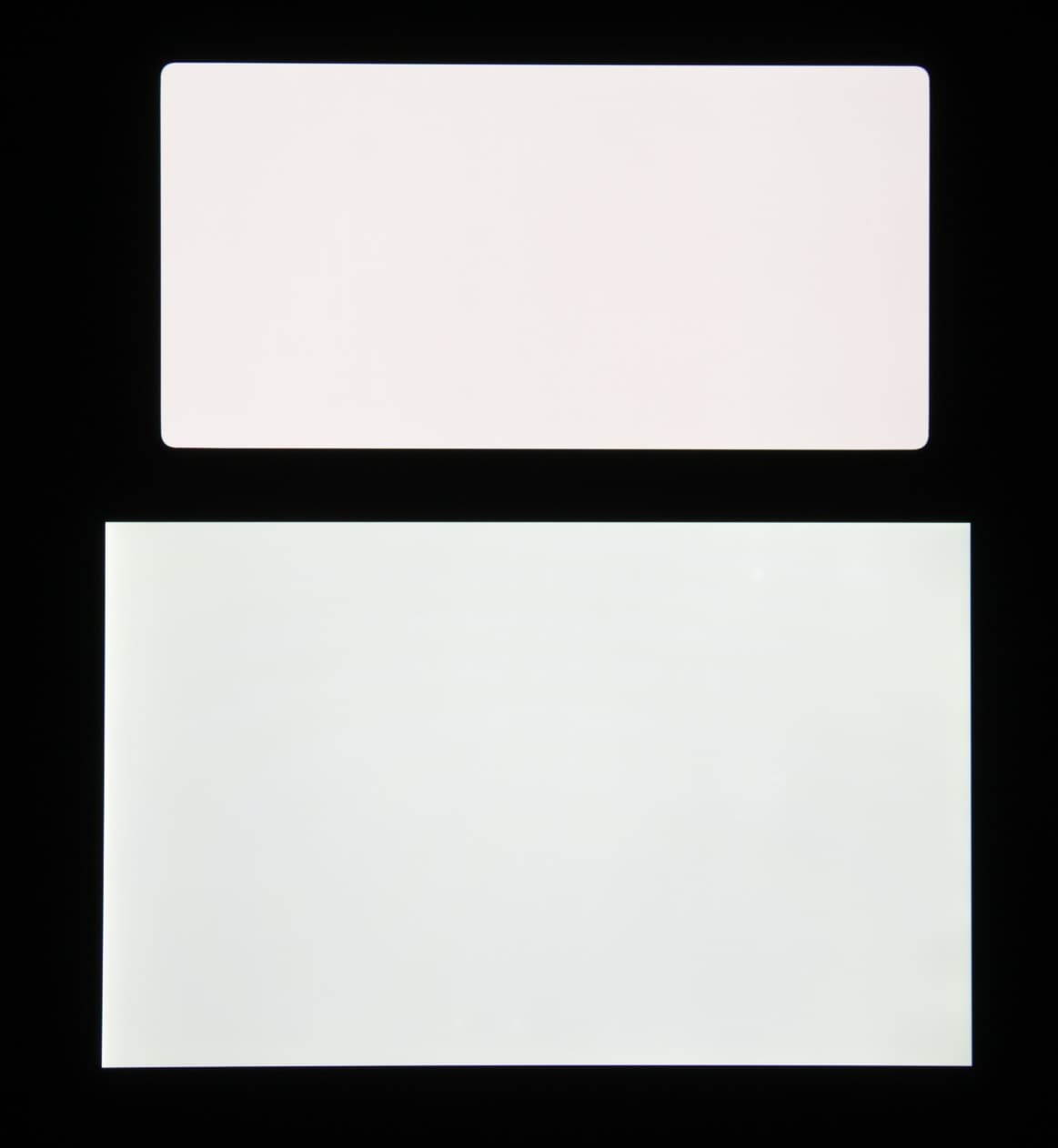 Экран характеризуется великолепными углами обзора. Оттенок белого цвета при отклонении взгляда от перпендикуляра к экрану меняется незначительно, а черный цвет остается просто черным под любыми углами. Он настолько черный, что параметр контрастности в данном случае неприменим. Для сравнения приведем фотографии, на которых на экраны Huawei P20 Pro (профиль Цвета → Обычные) и второго участника сравнения выведены одинаковые изображения, при этом яркость экранов изначально установлена примерно на 200 кд/м², а цветовой баланс на фотоаппарате принудительно переключен на 6500 К.