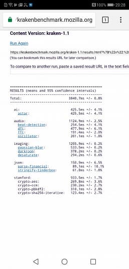 | Mozilla Kraken (мс, меньше — лучше) | 3841 | 2385 | 5106 |