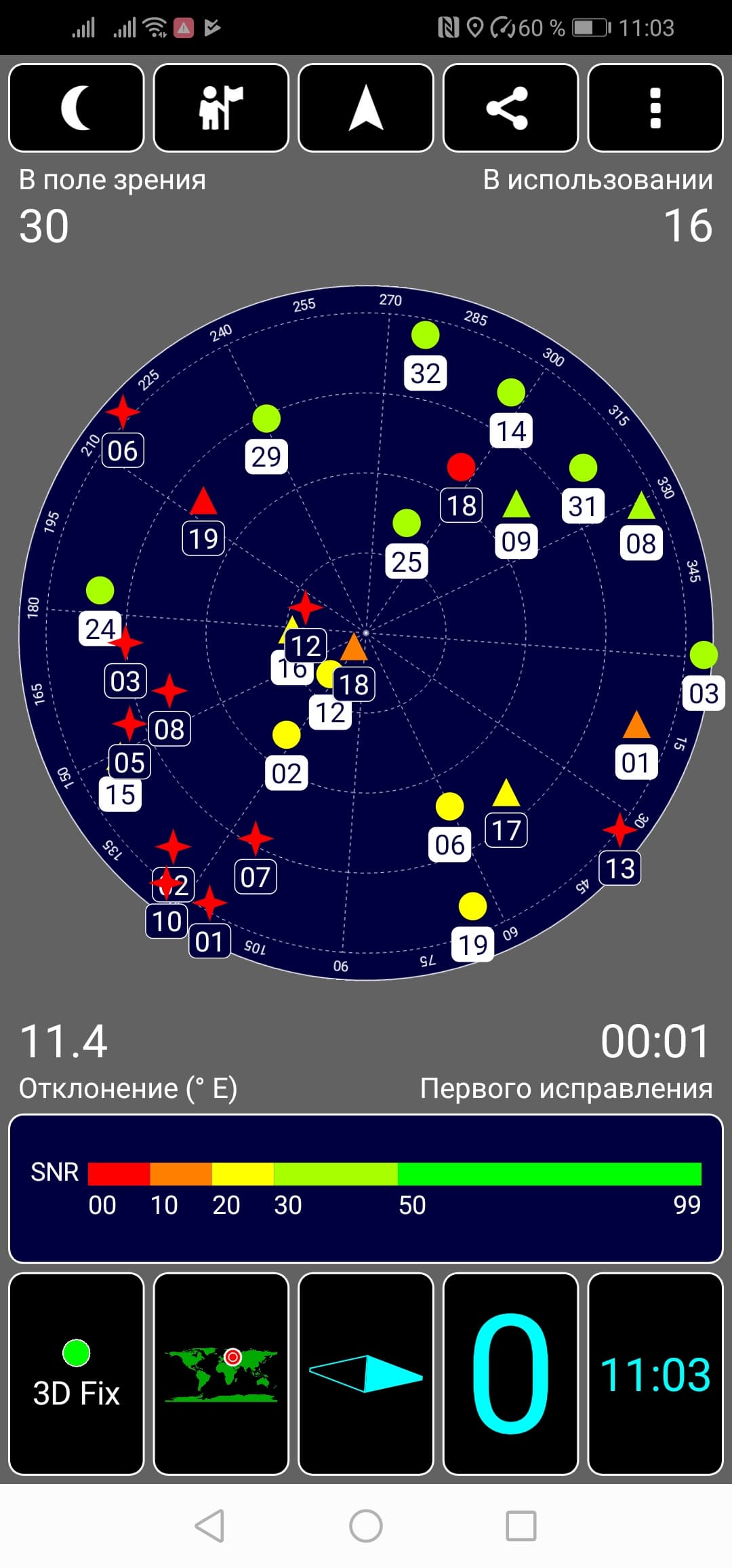 Навигационный модуль работает с GPS (двухчастотный, с A-GPS), с отечественной Глонасс и с китайской Beidou. При холодном старте поиск первых спутников занимает немало времени, обнаруживаются спутники как-то неспешно. Странно, но этот эффект мы наблюдаем при тестировании каждого смартфона на Kirin 710. Магнитный компас, необходимый для навигационных программ, в смартфоне имеется.