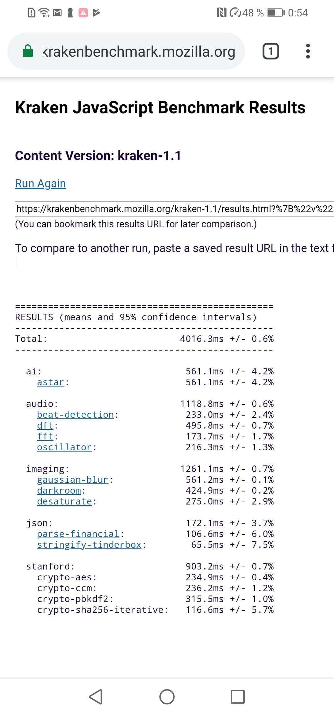 | Mozilla Kraken (мс, меньше — лучше) | 4016 | 2859 | 2869 | 3924 | 3945 |