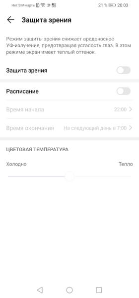 Присутствует модная настройка, позволяющая снизить интенсивность синей компоненты.