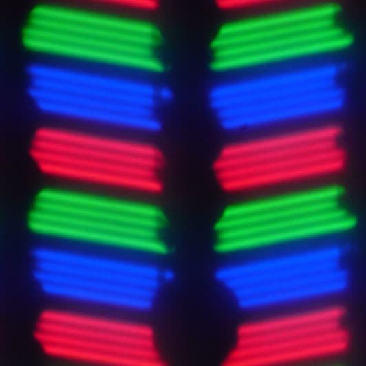 В данном смартфоне используется матрица типа IPS. Микрофотографии демонстрируют типичную для IPS структуру субпикселей: