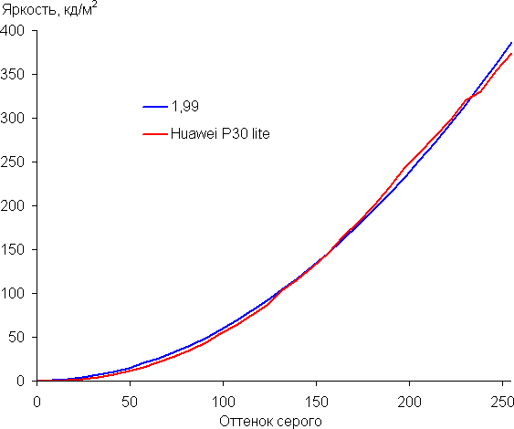 Контрастность (примерно в центре экрана) высокая — порядка 1200:1. Время отклика при переходе черный-белый-черный равно 22 мс (11 мс вкл. + 11 мс выкл.). Переход между полутонами серого 25% и 75% (по численному значению цвета) и обратно в сумме занимает 37 мс. Построенная по 32 точкам с равным интервалом по численному значению оттенка серого гамма-кривая не выявила завала ни в светах, ни в тенях. Показатель аппроксимирующей степенной функции равен 1,99, что ниже стандартного значения 2,2. При этом реальная гамма-кривая заметно отклоняется от степенной зависимости:
