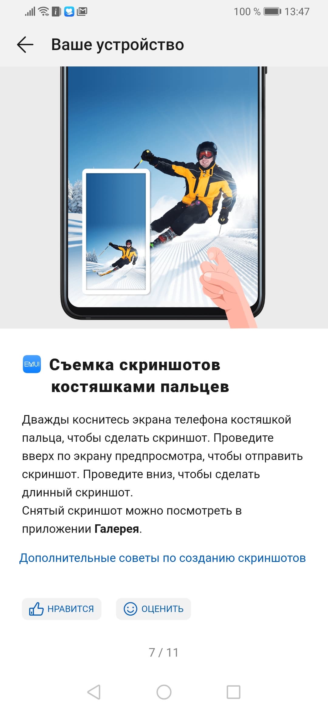 Смартфон не получил стереодинамиков для воспроизведения музыки, озвучки фильмов и игр. Звучание яркое, довольно громкое и чистое, но все же топовым решениям со стереодинамиками оно, конечно, уступает. Собственно, второго (разговорного) динамика тут нет вовсе: Huawei для уменьшения полей над экраном использовала некую пьезотехнологию передачи звука через стекло дисплея. По ощущениям на практике, никакой разницы в сравнении с традиционным динамиком мы не заметили.