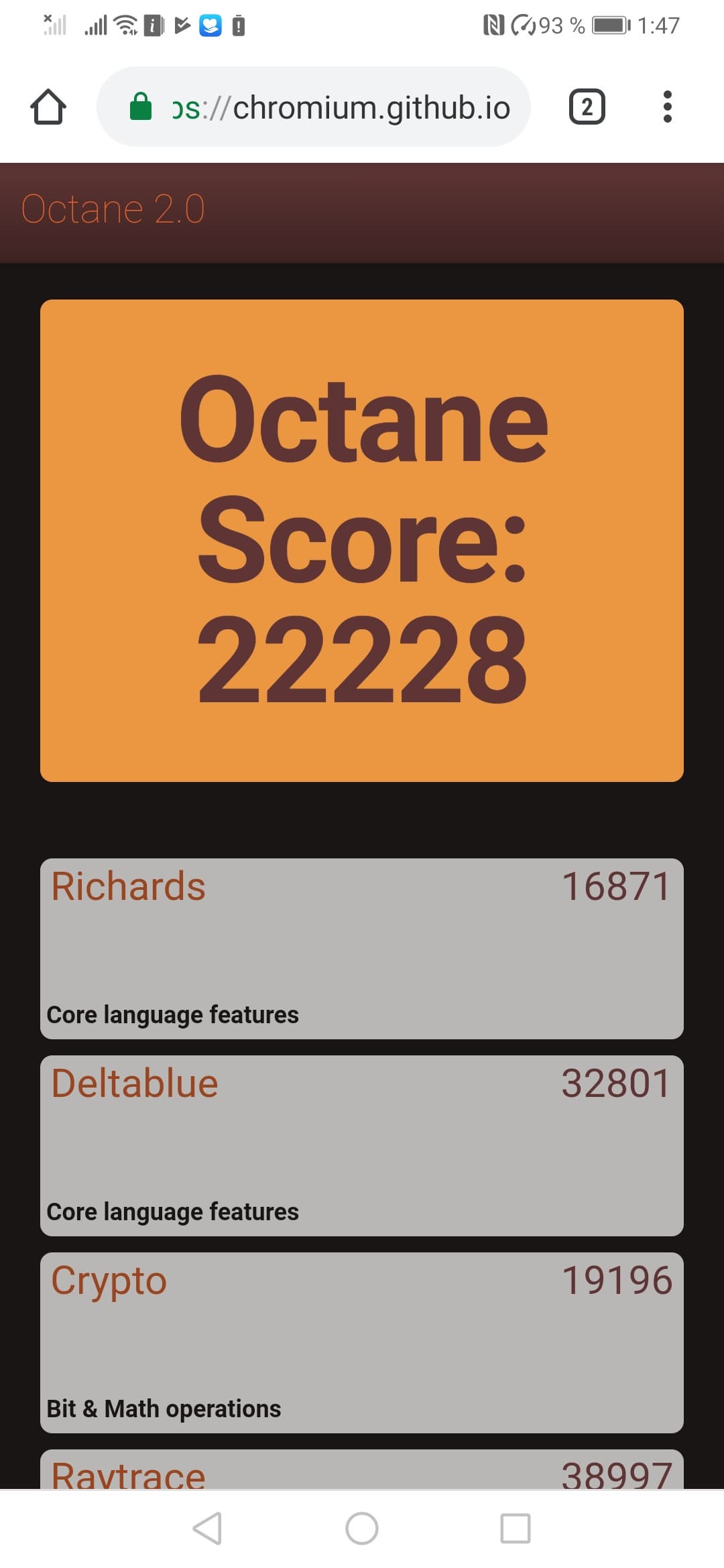 | Google Octane 2 (больше — лучше) | 22228 | 18909 | 25361 | 15126 | 15042 |