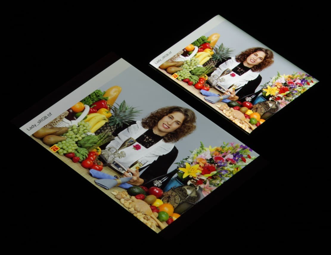 Отметим, что на экранах с широким цветовым охватом (без соответствующей коррекции) цвета́ обычных изображений, оптимизированных для устройств sRGB, выглядят неестественно насыщенными. Отсюда и рекомендация: в большинстве случаев смотреть кино, фотографии и все естественное лучше при выборе профиля Обычные [цвета], и только если фотография или видео имеют охват DCI-P3, принятый в цифровом кинематографе и «родной» для топовых устройств Apple, имеет смысл переключить профиль на Яркие [цвета].