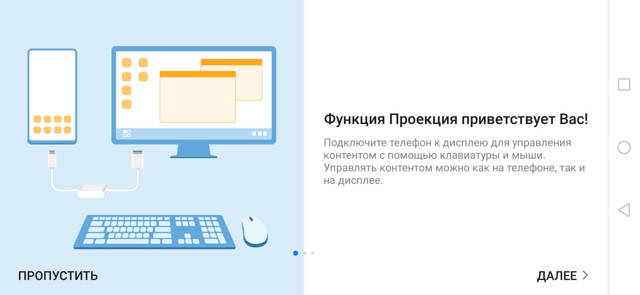 Данный аппарат поддерживает DisplayPort Alt Mode для USB Type-C — вывод изображения и звука на внешнее устройство при подключении к порту USB. Работу в таком режиме мы опробовали совместно с адаптером Tronsmart CTHA1. При подключении к нашему монитору вывод видео осуществляется в режиме 1080p при 75 Гц кадровой частоты. Режимов работы два: вывод альтернативного рабочего стола (режим ПК) или простое копирование экрана смартфона (режим Телефон).