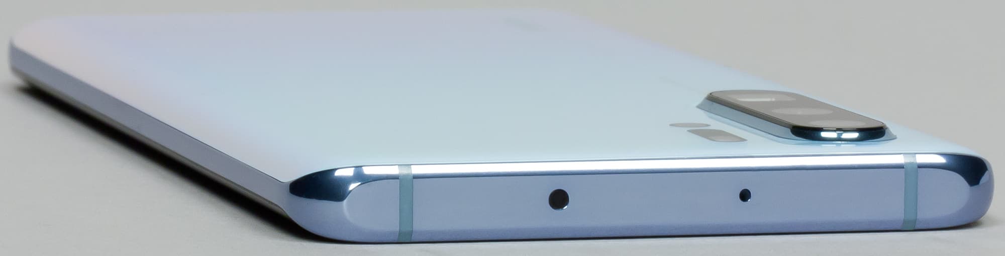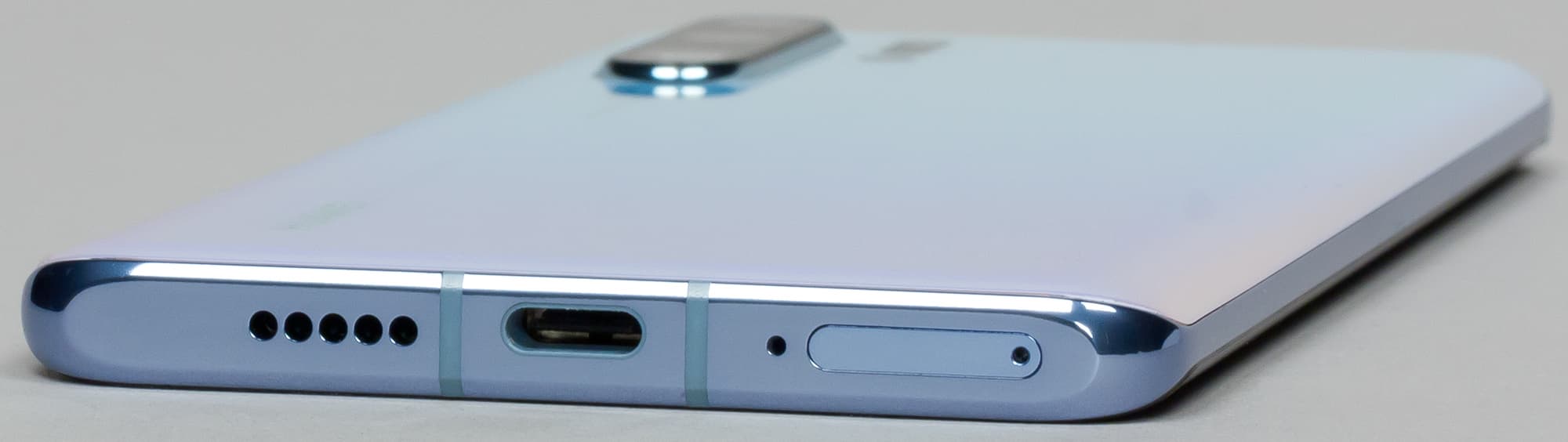 В нижнем торце установили динамик, разъем USB Type-C (конечно же, не отцентрованный), а также разъем для установки карточек (оригинальное решение, здесь мы его видим первый раз). А вот 3,5-миллиметровый выход на наушники установить забыли, и это печалит. А уж зачем Huawei проверяет пользователей на сообразительность и внимательность, размещая отверстие разговорного микрофона в максимальной близости от точно такого же с виду отверстия, в которое нужно вставлять металлический ключик для извлечения лотка с карточками, вообще непонятно. Но интересно было бы узнать статистику ошибочных «протыканий» мембраны микрофона.