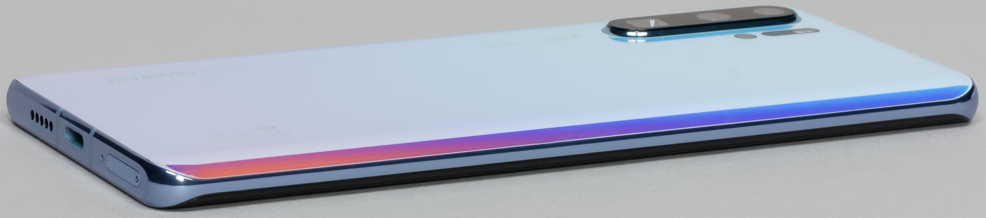 Экран у Huawei P30 Pro заметно темнее (яркость по фотографиям 110 против 120 у Nexus 7) и не имеет выраженного оттенка. Двоение отраженных объектов в экране Huawei P30 Pro очень слабое, это свидетельствует о том, что между слоями экрана нет воздушного промежутка. За счет меньшего числа границ (типа стекло/воздух) с сильно различающимися коэффициентами преломления экраны без воздушного промежутка лучше смотрятся в условиях интенсивной внешней засветки, но вот их ремонт в случае потрескавшегося внешнего стекла обходится гораздо дороже, так как менять приходится экран целиком. На внешней поверхности экрана Huawei P30 Pro есть специальное олеофобное (жироотталкивающее) покрытие (эффективное, заметно лучше, чем у Nexus 7), поэтому следы от пальцев удаляются существенно легче, а появляются с меньшей скоростью, чем в случае обычного стекла.