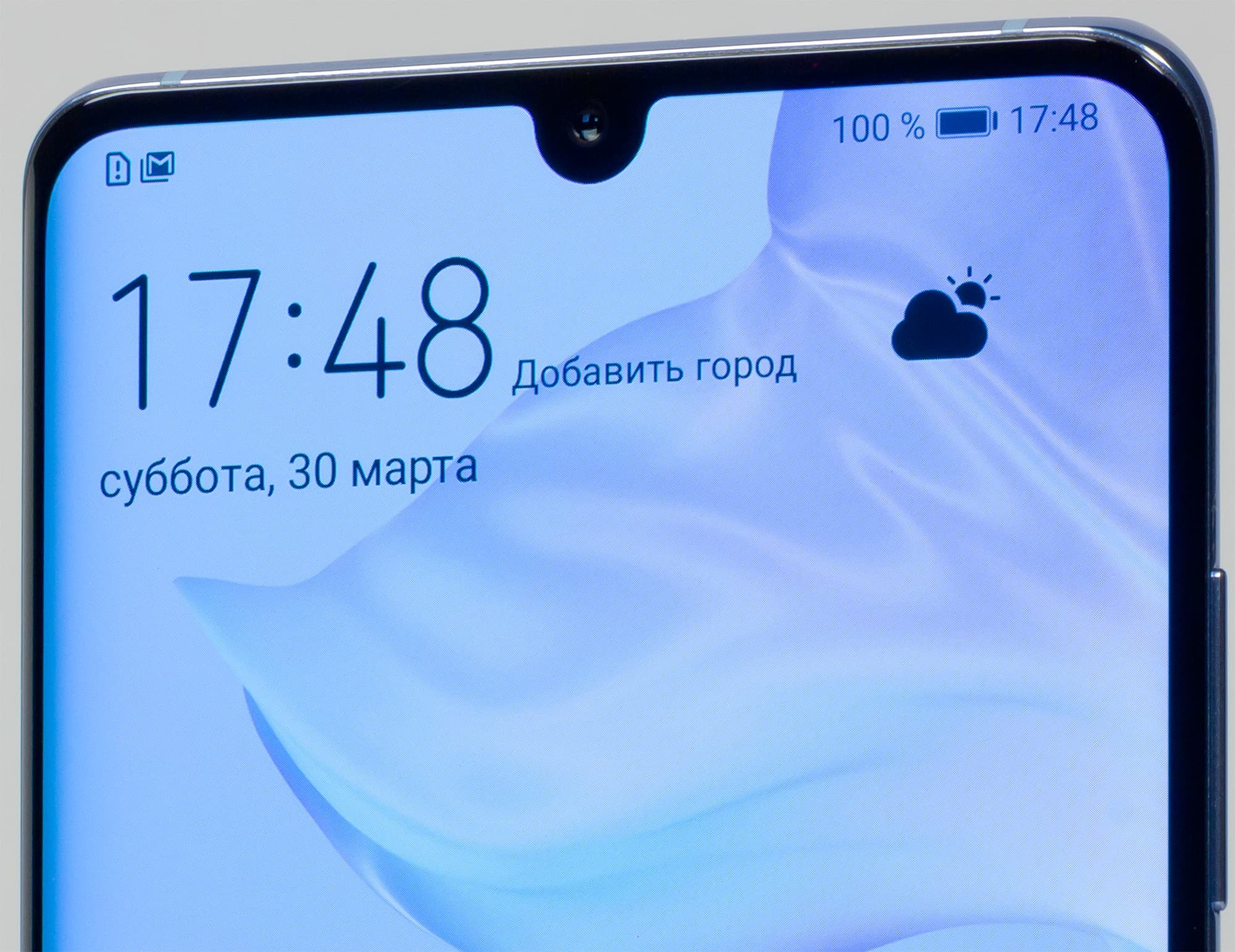 Цветопередача хорошая, цвета в меру насыщенные, цветовой баланс у экранов немного различается. Напомним, что фотография не может служить надежным источником сведений о качестве цветопередачи и приводится только для условной наглядной иллюстрации. В частности, выраженный красноватый оттенок белого и серого полей, присутствующий на фотографиях экрана Huawei P30 Pro, при перпендикулярном взгляде визуально отсутствует, что подтверждается аппаратными тестами с помощью спектрофотометра. Причина в том, что спектральная чувствительность матрицы фотоаппарата неточно совпадает с этой характеристикой человеческого зрения. Заметим, что в данном случае картинка занимает в высоту (при ландшафтной ориентации экрана) всю доступную для вывода изображения область и заходит на загнутые края экрана, что приводит к легкому затемнению и искажению цвета. Также на свету эти области почти всегда бликуют, что еще больше мешает при просмотре изображений, выведенных на весь экран.