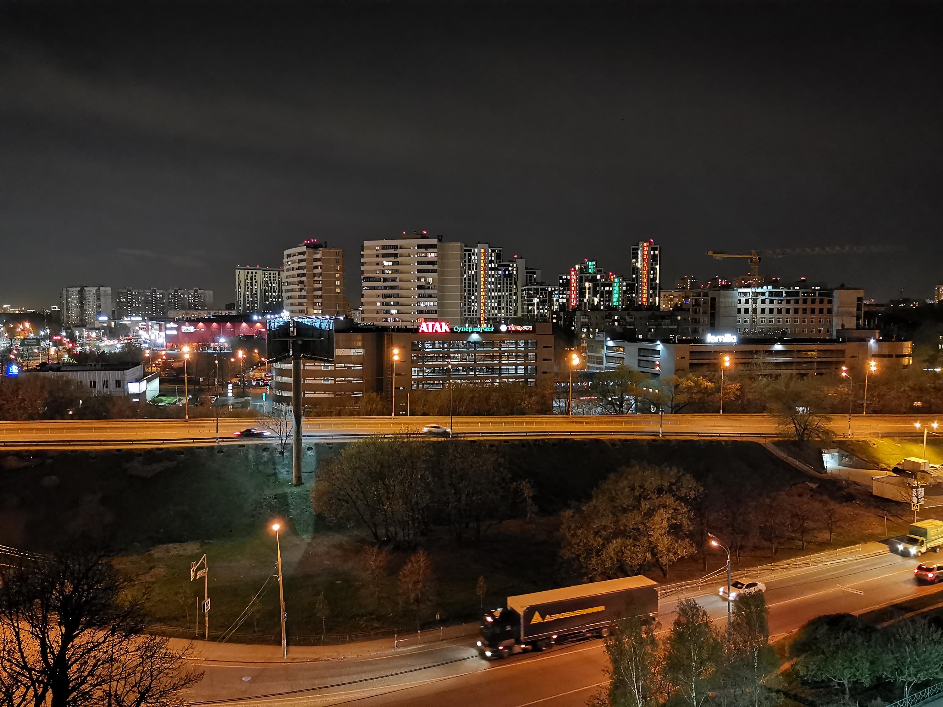 Конечно, с ухудшением освещения качество снимков начинает деградировать. Впрочем, многие смартфоны были бы рады такому качеству и днем. Освещенные статичные объекты по-прежнему получаются неплохо, но подавление шумов уже приводит к неприятным артефактам, а движущиеся объекты так вообще не снять. Чтобы не задирать до бесконечности светочувствительность, камера предлагает специальный ночной режим, в котором имитирует съемку с 4-секундной выдержкой, делая подряд и склеивая несколько снимков. Результат полностью соответствует ожиданиям, качество картинки улучшается, становится возможно разглядеть то, на что не хватало освещения в обычном режиме.