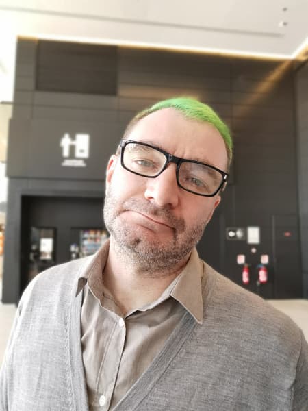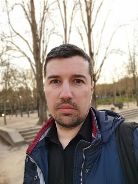 Фронтальная камера одиночная, она вписана в маленький каплевидный вырез в экране. Модуль с матрицей на 32 Мп имеет объектив с диафрагмой f/2,0 без автофокусировки. Даже с одним модулем камера вполне достойно справляется со своими задачами. На 32 Мп она не снимает, но если отмасштабировать снимки (или выбрать меньшее разрешение), то детализация и резкость впечатляют, цветопередача в целом в норме, камера не пасует при любом освещении, и ее возможностей вполне достаточно большинству пользователей. А вот алгоритмы обтравки центрального объекта в кадре для размытия фона вокруг него все еще далеки от идеала, в сложной обстановке и особенно при сложной прическе они по-прежнему пасуют, не могут полноценно имитировать «оптическую» глубину резкости.