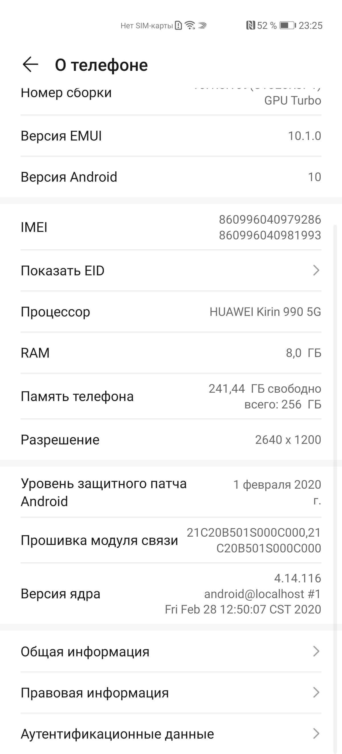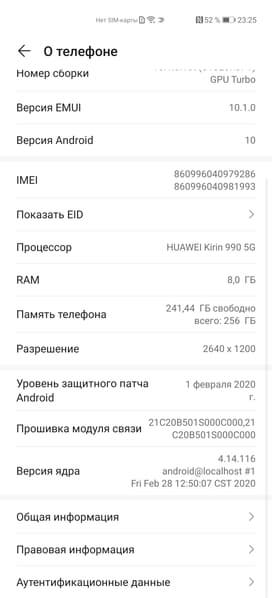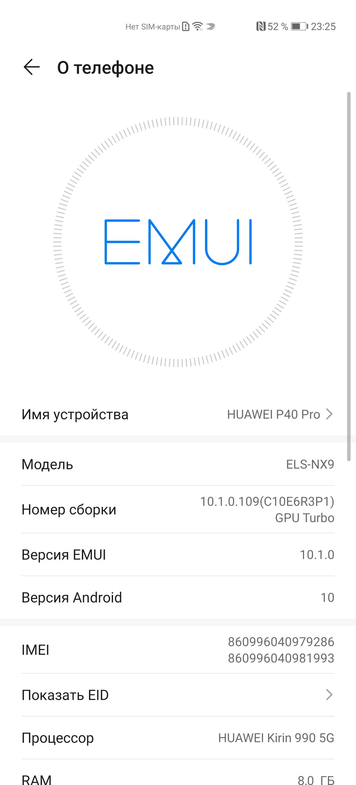 - Операционная система Android 10.0 (AOSP + HMS); EMUI 10