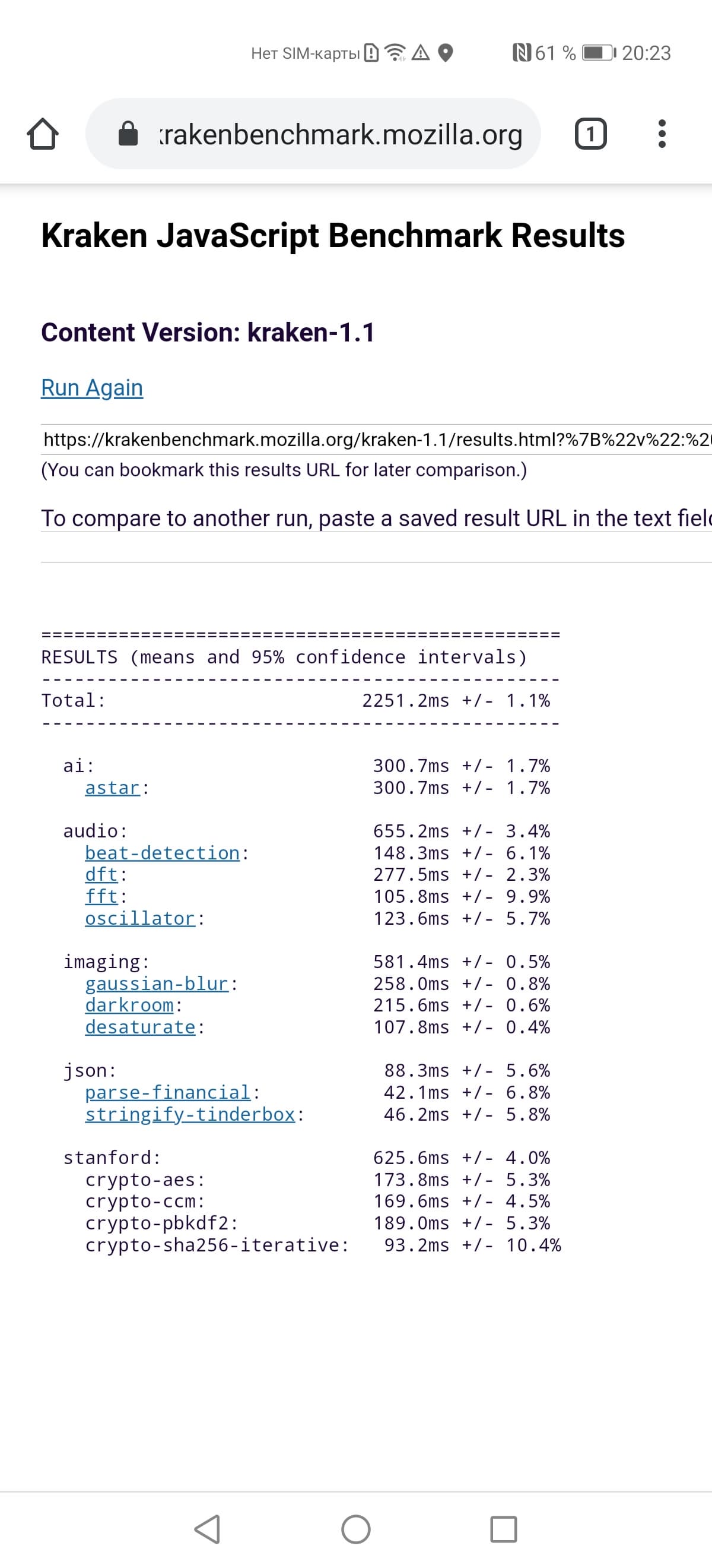 | Mozilla Kraken (мс, меньше — лучше) | 2251 | 2446 | 2555 | 2109 | 4080 |