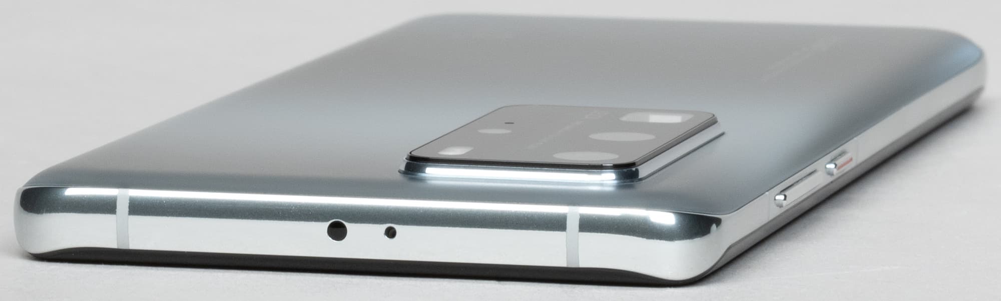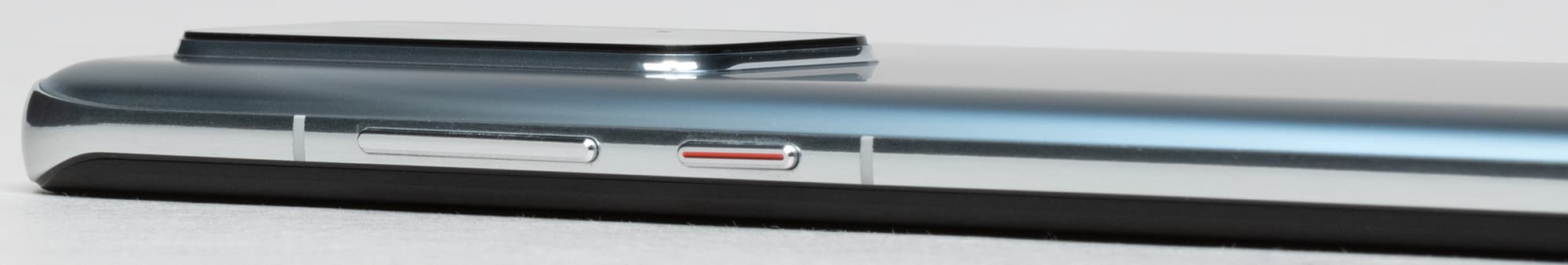 Дизайн в целом смотрится серьезно, стильно и дорого. Спинка значительно красивее обычного гладкого стекла, матовая поверхность напоминает покрытие OnePlus 7T Pro. Не радует лишь тенденция загибать края экрана: она здесь доведена до предела, поскольку стекло загнуто теперь еще и на верхнем и нижнем торцах. Естественно, загибы дают отблески, да и изображения на этих краях нет — лишь черные широкие полосы.