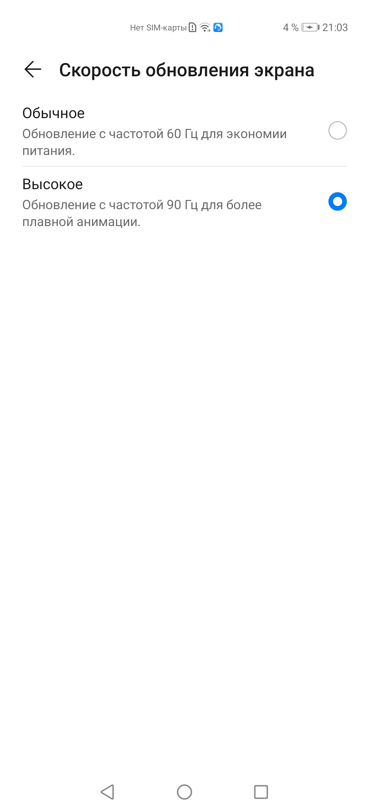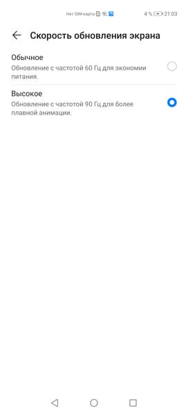 В настройках экрана можно включить режим с повышенной до 90 Гц частотой обновления: