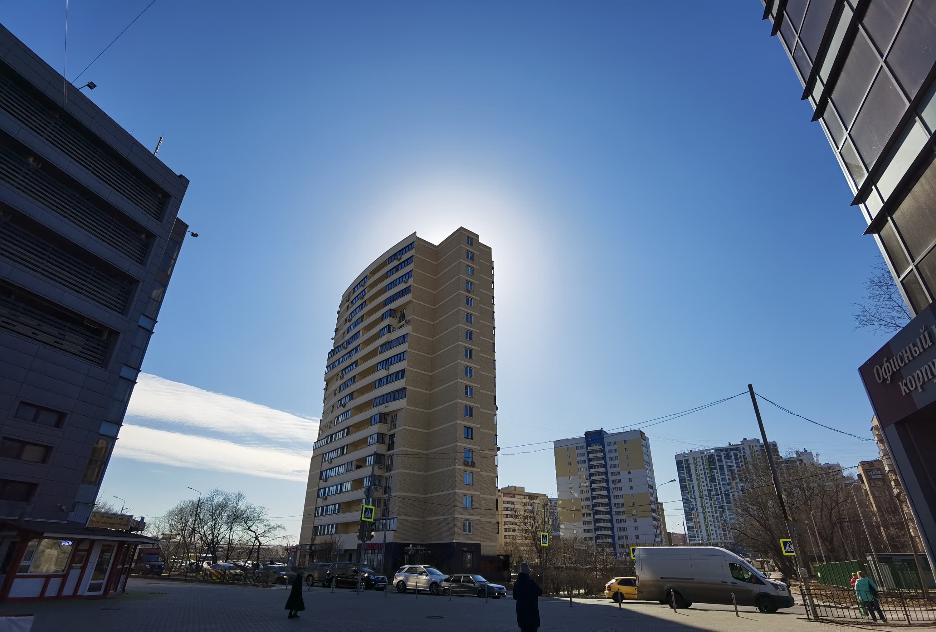 Наконец, самое интересное. Сверхширокоугольный модуль имеет разрешение сенсора 40 Мп (1/1,54″) и объектив f/1,8 (ЭФР 18 мм). Он также работает по принципу объединения 4 пикселей в 1, снимая по умолчанию в разрешении 10 Мп. Помимо прочих улучшений (относительно аналогичных модулей в других смартфонах), этот модуль получил автофокусировку PDAF. Тех, кто привык к обычному кошмарному качеству нынешних «шириков» в смартфонах, фотографии с Huawei P40 Pro шокируют: высокая четкость по всему полю кадра, никакой мазни по краям, никакого шума на небе и однородных поверхностях, ровные веточки и провода даже в углах… Да чего там говорить, качество сравнимо с основным модулем! Ну хорошо, в самых углах заметны перспективные искажения, но в этом не виноваты ни сенсор, ни оптика — только бессердечная математика отображения сверхширокоугольной фотографии на плоскость. В общем, это не просто лучший широкоугольник в смартфонах. Он на голову выше всех остальных виденных нами решений. Остальным производителям срочно пора просыпаться.