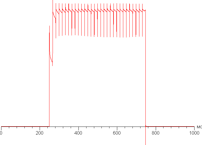 Переключение состояния элементов матрицы выполняется практически мгновенно, но на фронте включения может присутствовать ступенька шириной примерно 17 мс (что соответствует частоте обновления экрана примерно в 60 Гц) или примерно 11 мс (90 Гц). Например, так выглядит зависимость яркости от времени при переходе от черного к белому и обратно (режим 60 Гц):