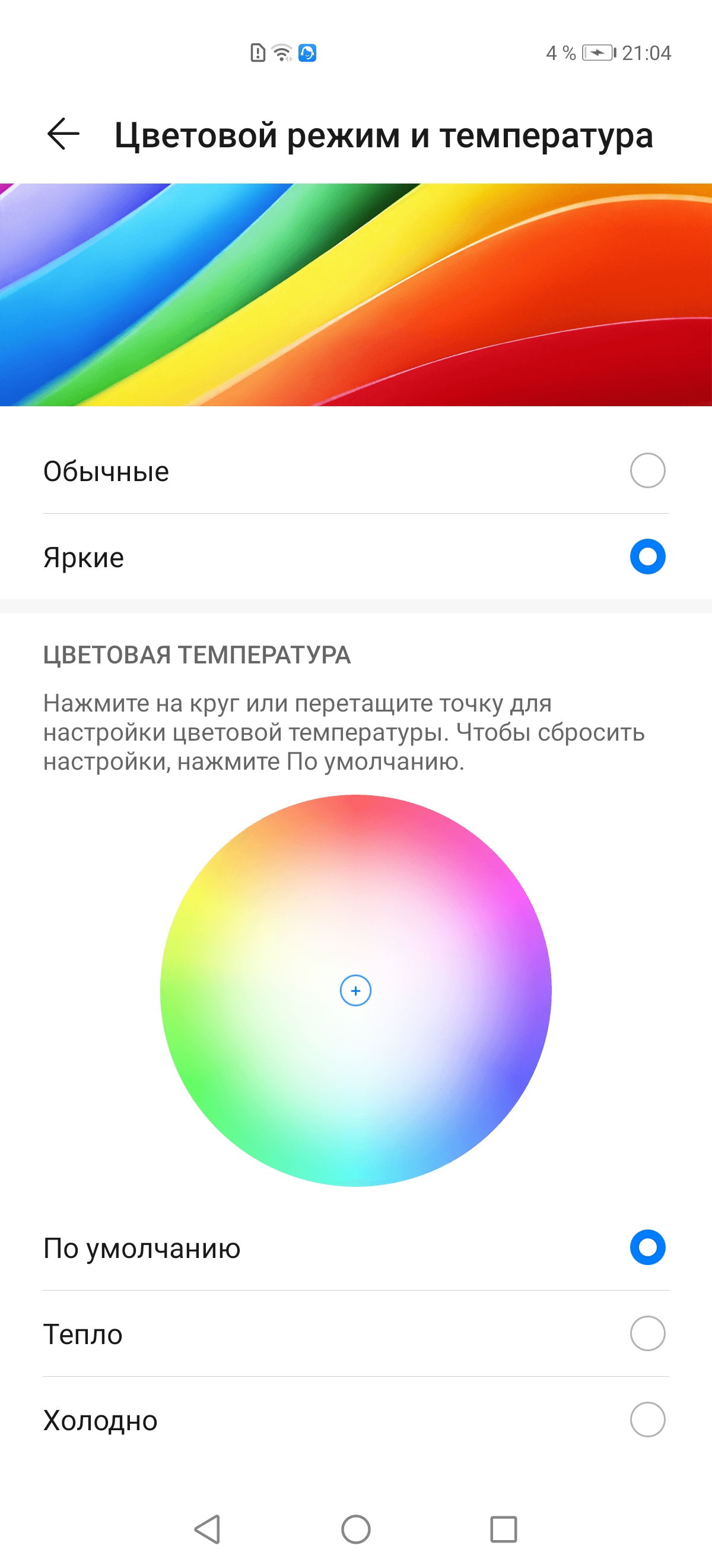 Фотография выше получена после выбора профиля Обычные [цвета] в настройках экрана, всего их два: