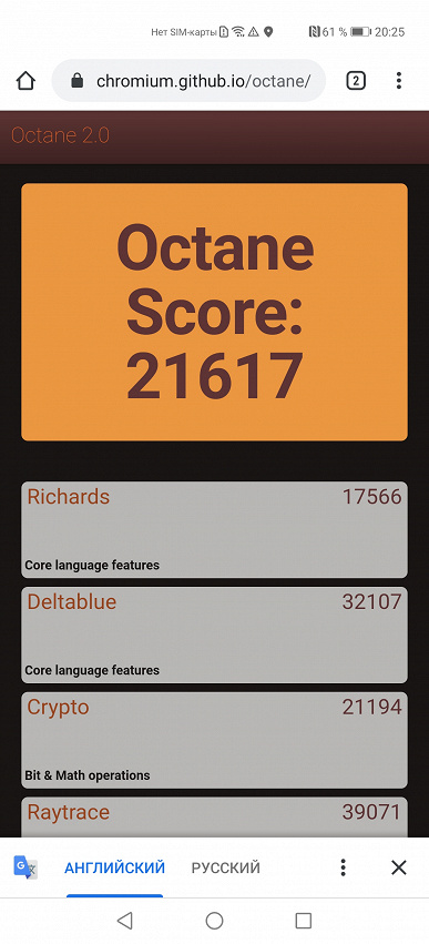 | Google Octane 2 (больше — лучше) | 21617 | 18267 | 24798 | 24816 | 8987 |