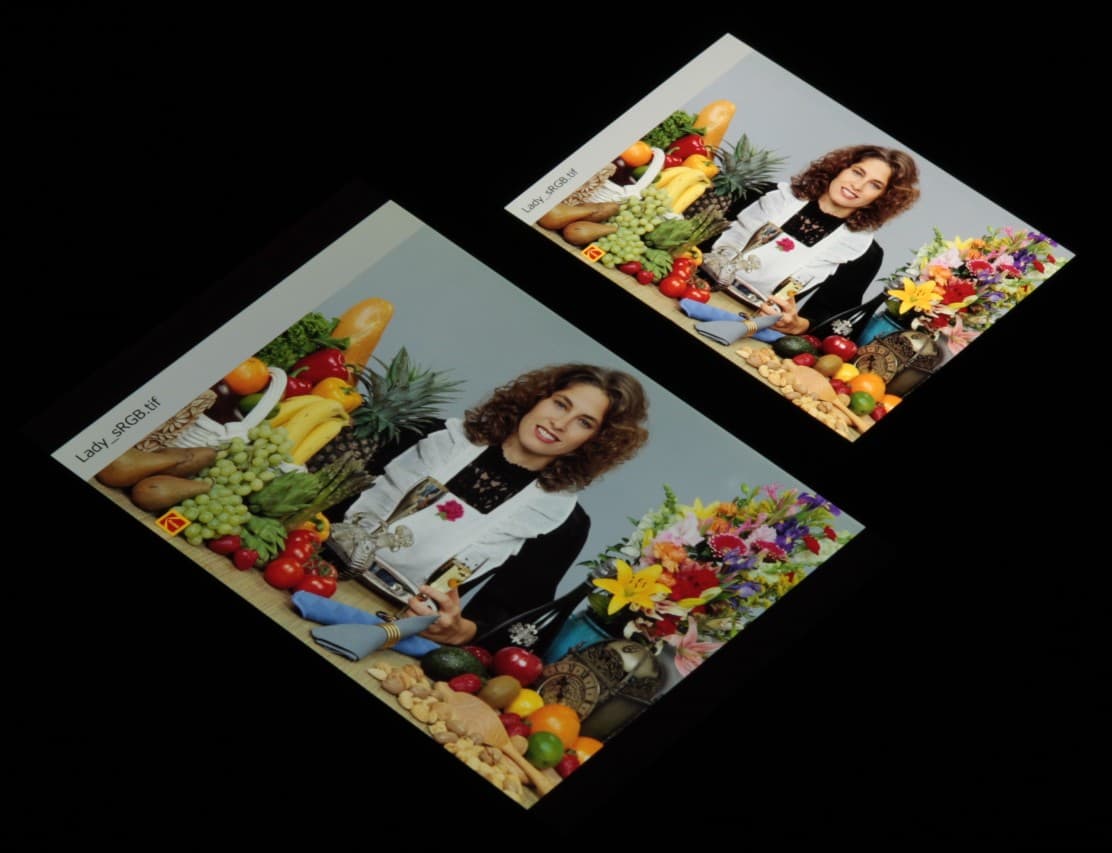 Отметим, что на экранах с широким цветовым охватом (без соответствующей коррекции) цвета́ обычных изображений, оптимизированных для устройств sRGB, выглядят неестественно насыщенными. Отсюда и рекомендация: в большинстве случаев смотреть кино, фотографии и все естественное лучше при выборе профиля Обычные, и только если фотография или видео имеют охват DCI-P3, принятый в цифровом кинематографе и «родной» для топовых устройств Apple, имеет смысл переключить профиль на Яркие.
