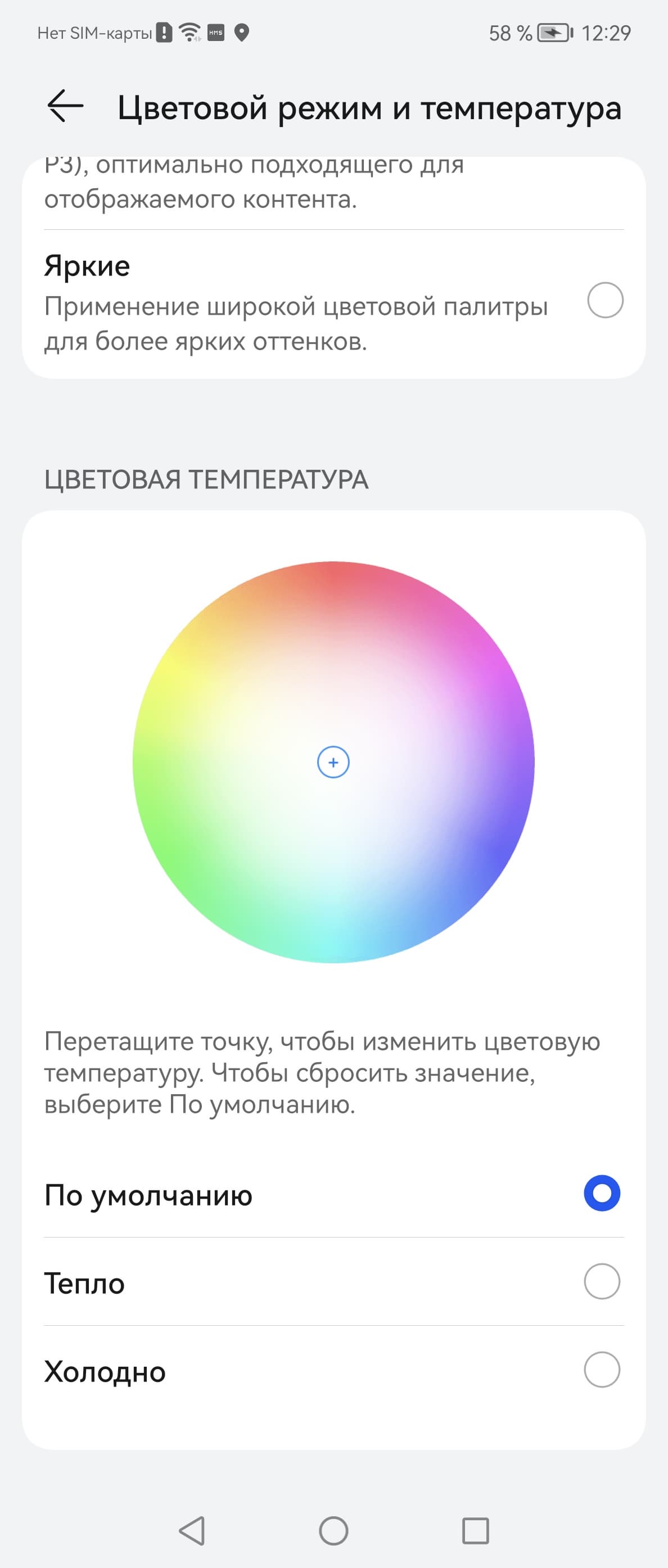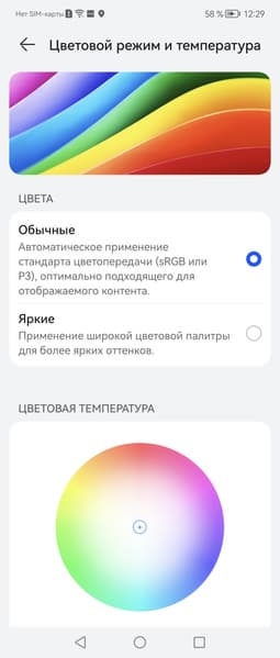 Фотография выше получена при активном профиле Обычные (он выбран по умолчанию) в настройках экрана, всего их два: