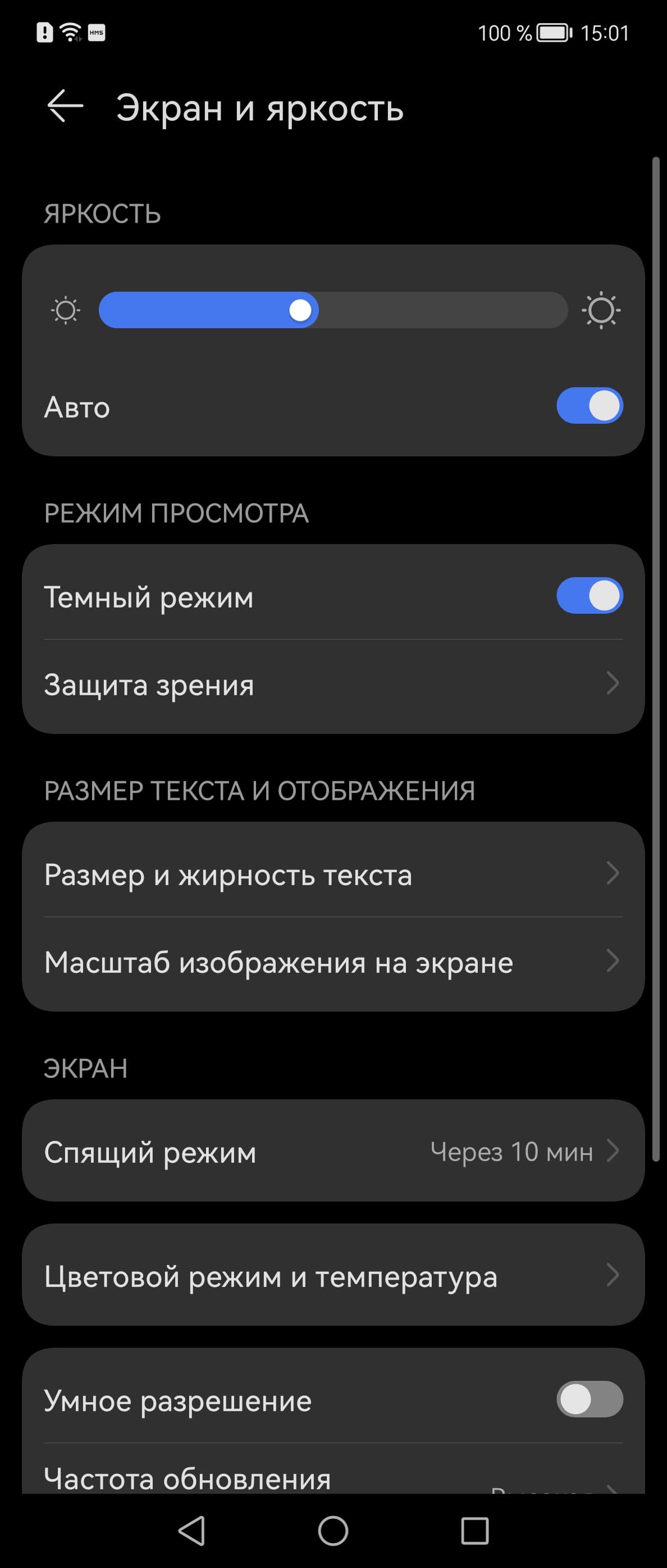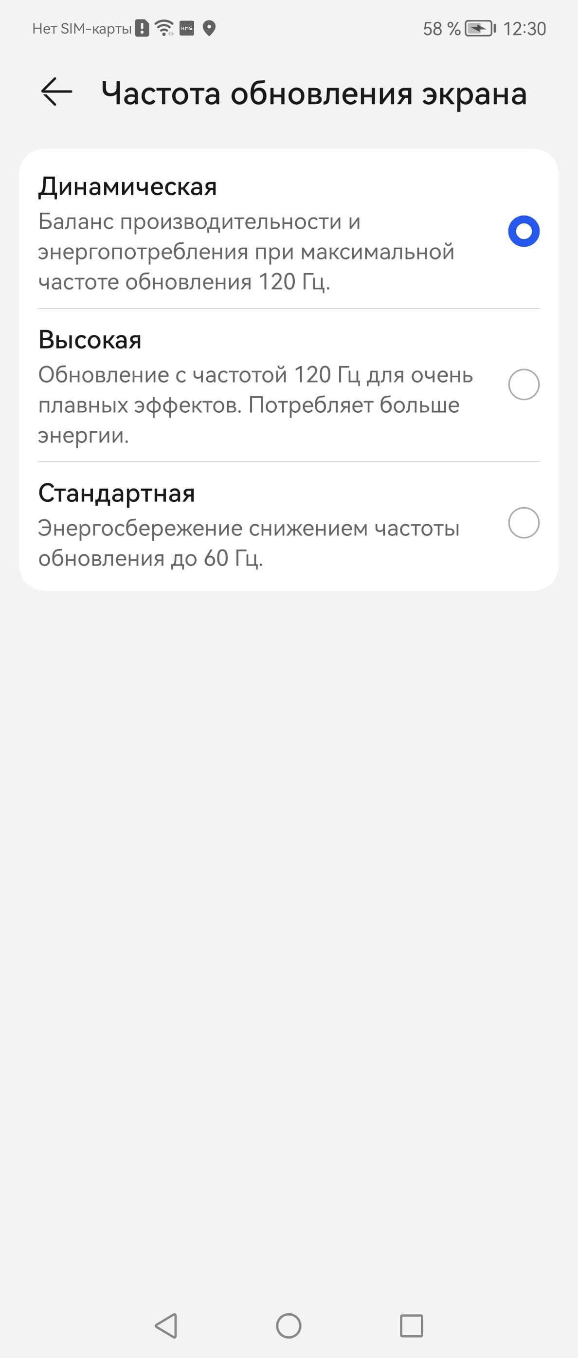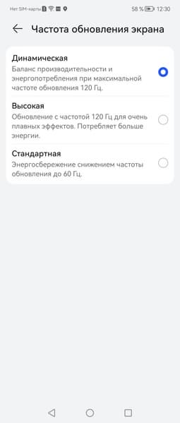 В настройках экрана можно включить режим с повышенной до 120 Гц частотой обновления: