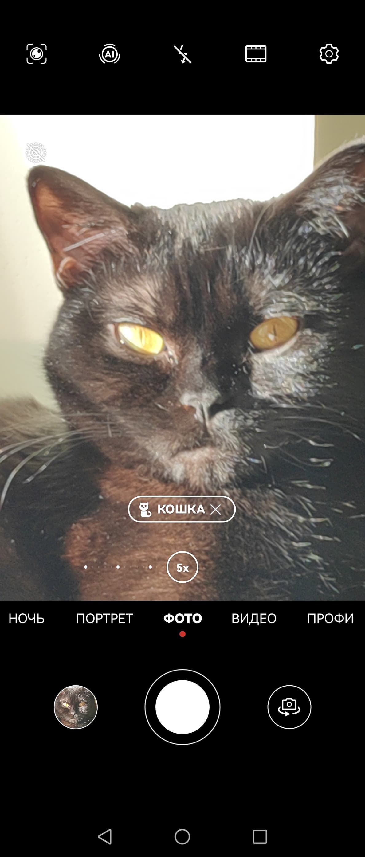 Оптического зума опять нет, любое «приближение» здесь — лишь цифровое увеличение с поэтапной потерей качества, и если до двукратного приближения камера хотя бы использует реальные пиксели матрицы (благо она 40 Мп), то дальше идет чистая программная интерполяция. На экране видоискателя, тем не менее, предусмотрены отдельные кнопки для значений зума 5× и 10×.
